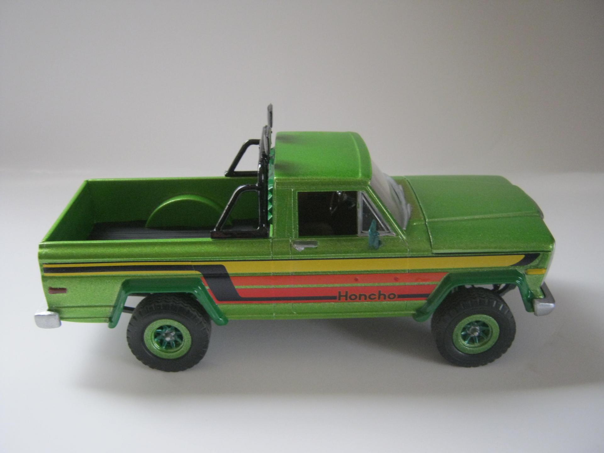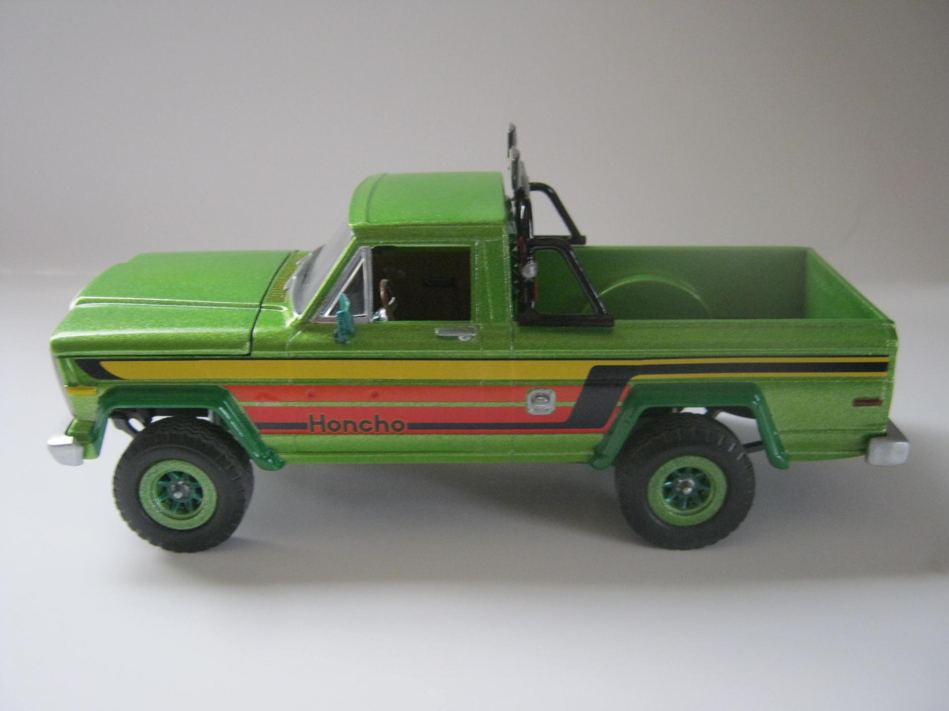 Little Green Honchoskymnky721 posted a topic in Model Trucks: Pickups, Vans, SUVs, Light Commercial Hi all,hope alls well for ya,,I just finished this Revell "Ice Patrol" kit. Fun kit to do,,sprayed w/Testors "Lime Ice" quickdry enamel,,and some basic wiring and such. Always enjoyed the early 70's AMC products,,my grandpa had a Blue + white interior Jeep Wagoneer ,,had many a fun trip in that one. Enjoy the builds here,,Build on!