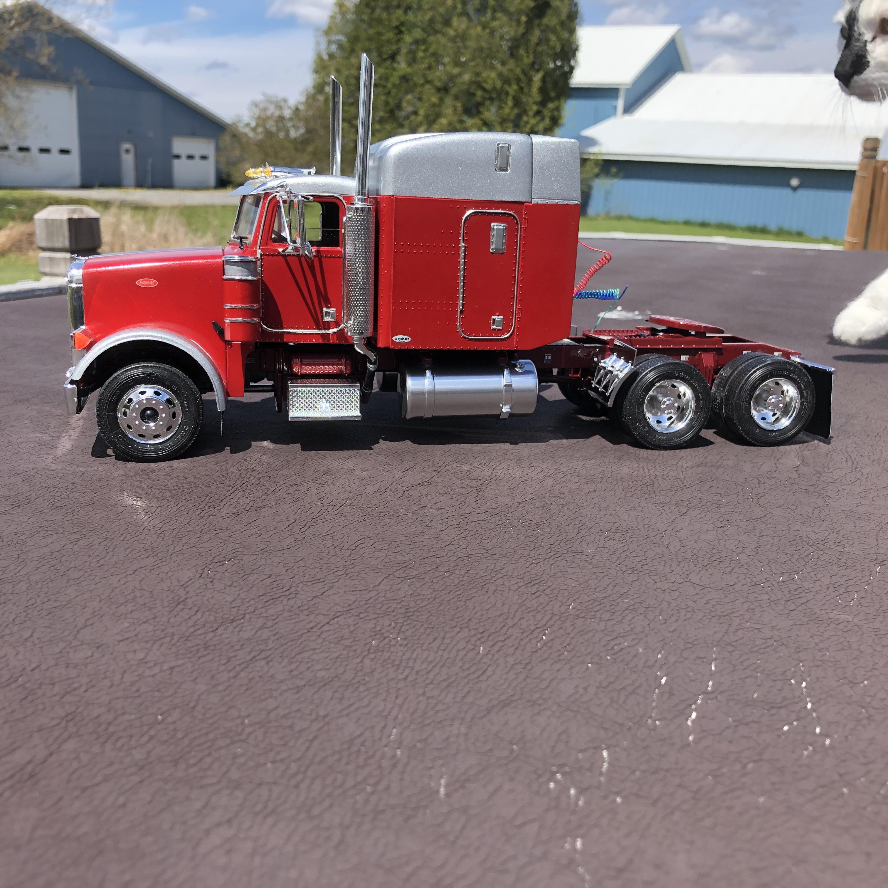 Another one in the done column. Great kit, everything fit nice, easy build. Colors are testors diamond dust silver, revving red and the frame is mythical maroon. I did use aftermarket mud flaps, service lines and deck plate. Thanks for looking.