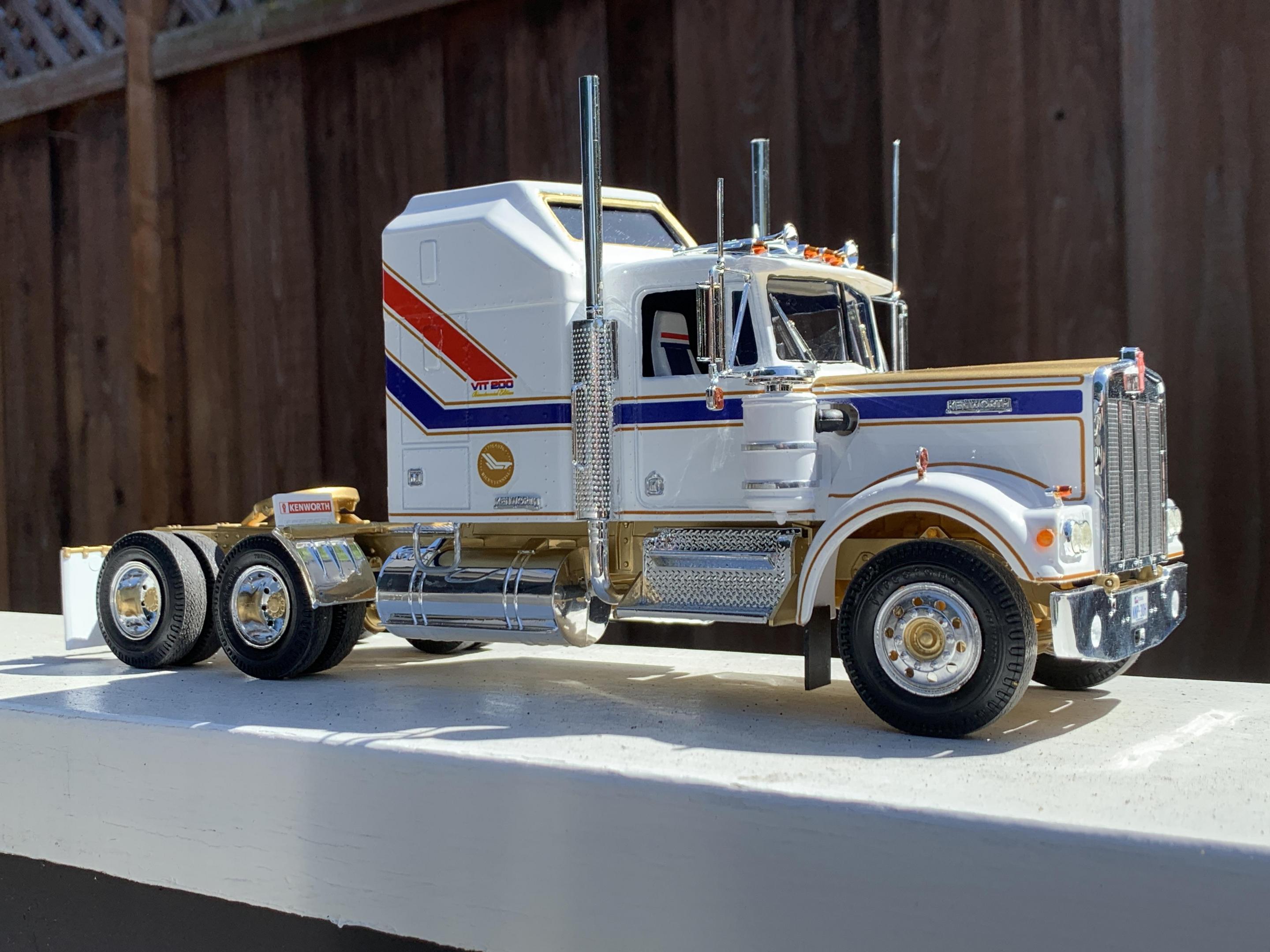 Finished this pair up the other day, the rig built up easily, the tanker on the other hand was a warped mess. Other than decals and mud flaps, the rig is box stock. On the trailer I decided to make front fenders for it, added flat pads on the landing gear rather than the kit supplied wheels, made new rear fenders to match the fronts and used moebius super single wheels/tires , all in an effort to maybe try to give the tanker a slightly more modern look. The service lines are all that’s left to glue in place, they fell out before the pics, lol. As always, thanks for looking.