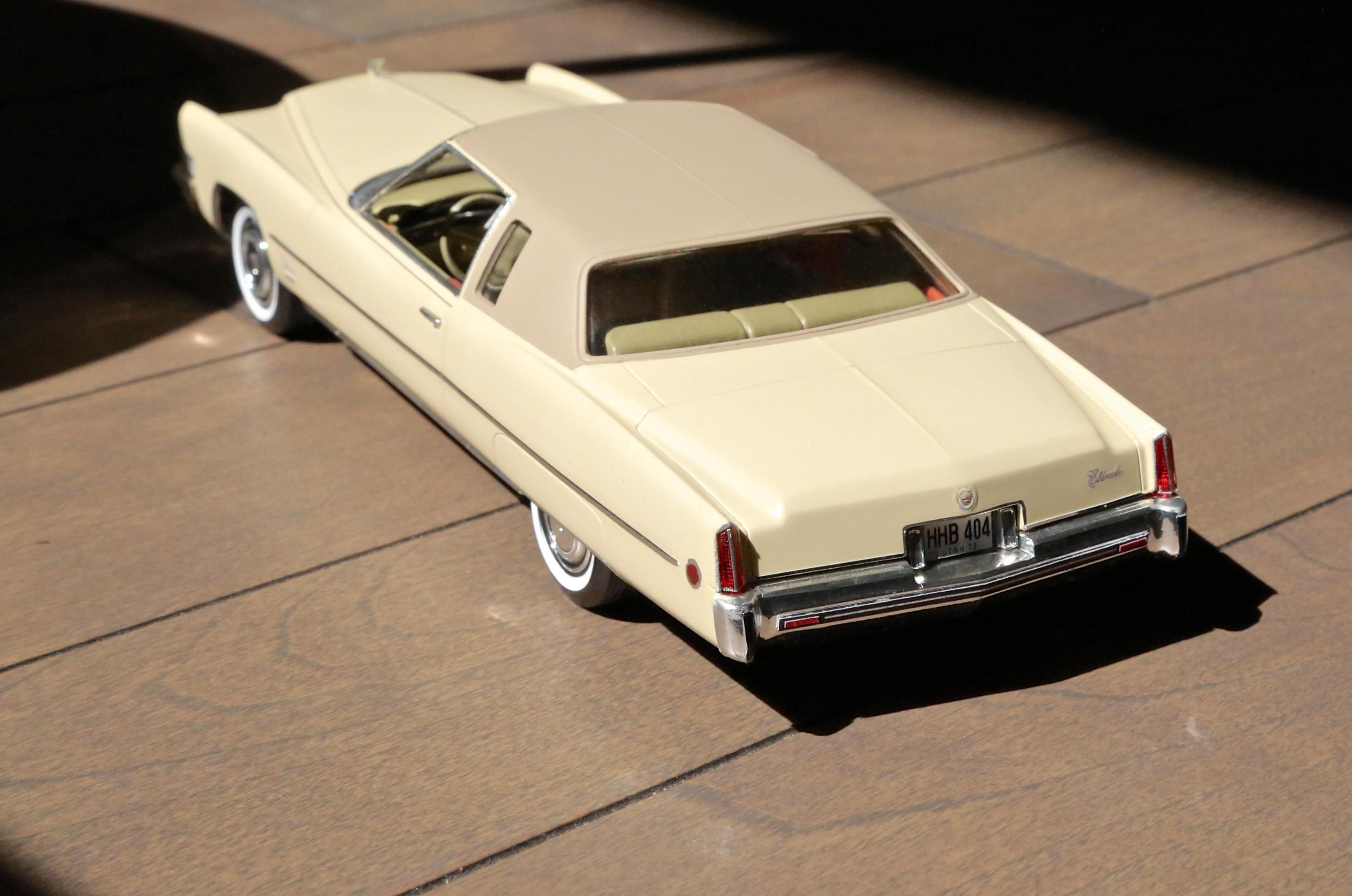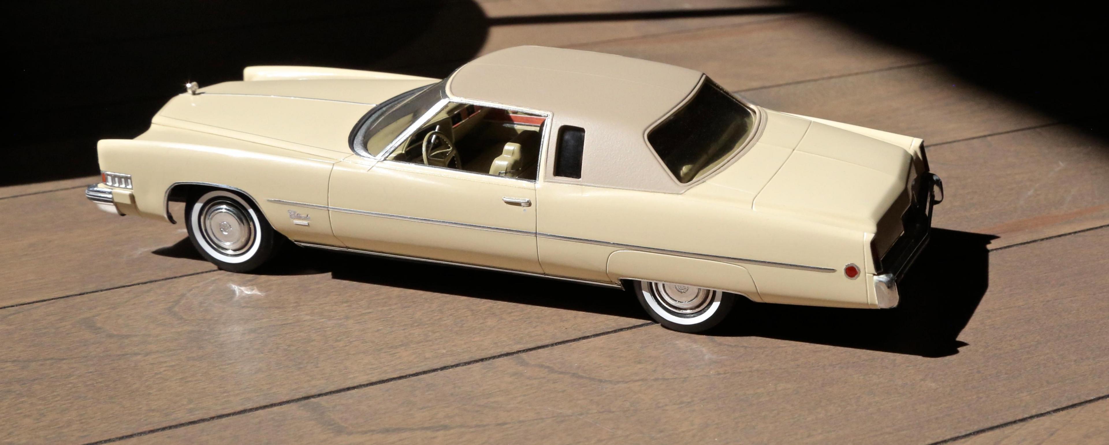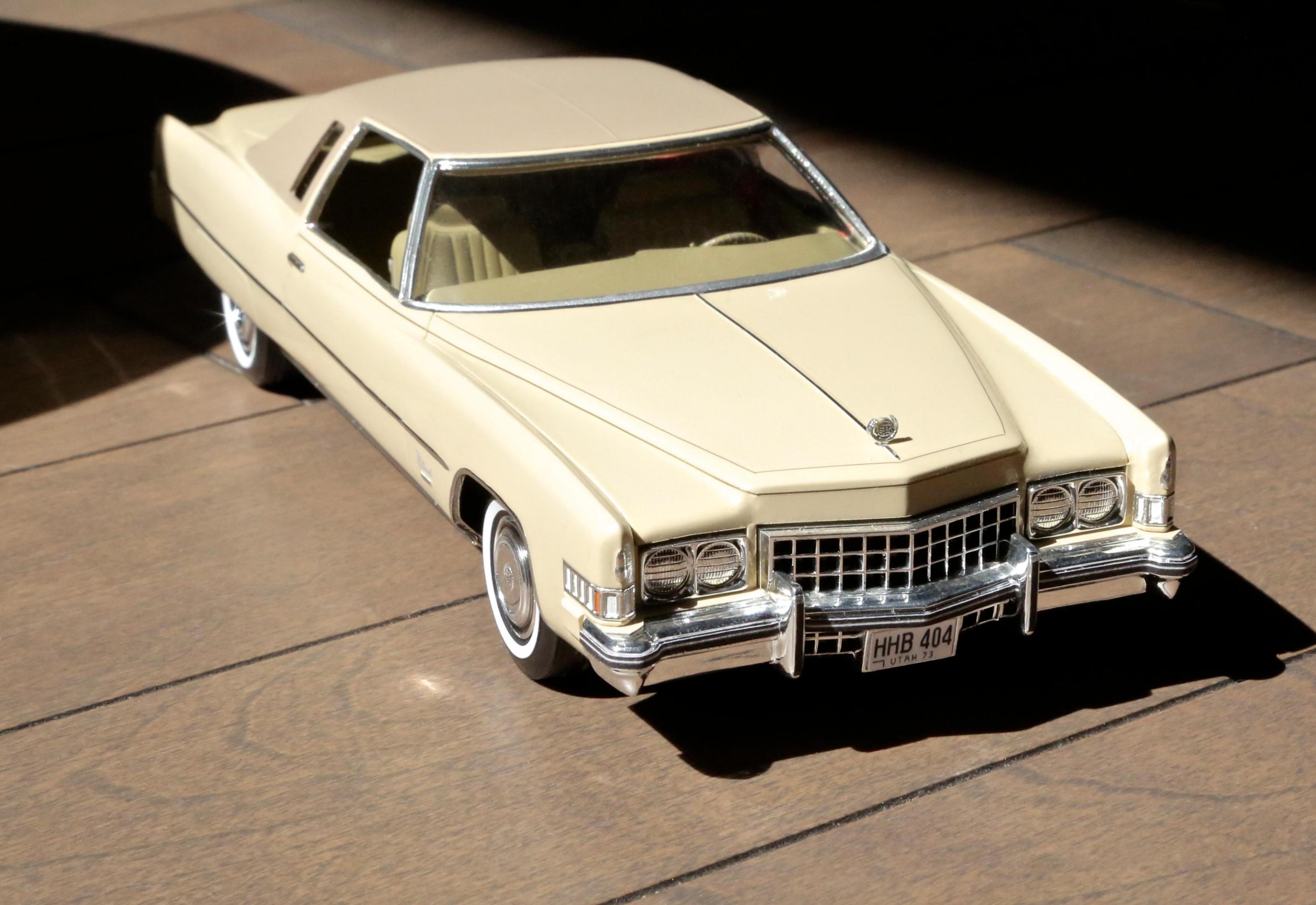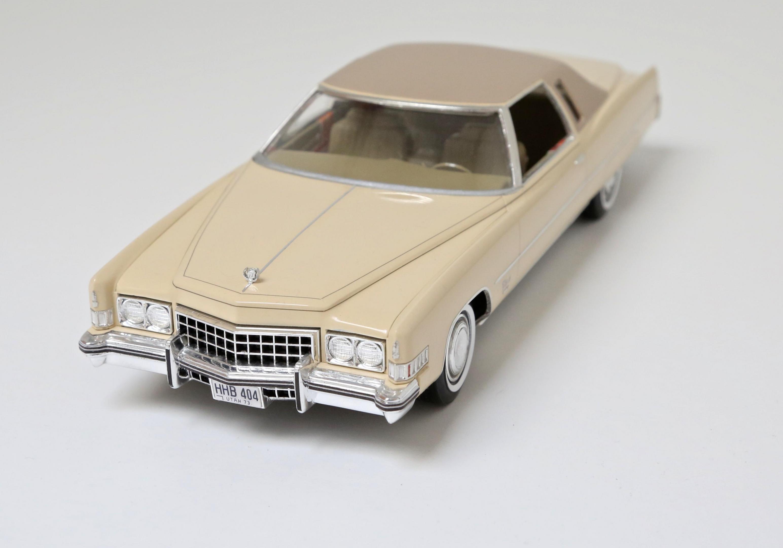 Hi guys. Here's a tribute to my own beloved 1973 Cadillac DeVille that I used to drive some years ago. I had a damaged 1973 Eldorado promo left that I wanted to restore with the exact same colours combination than my late DeVille. So here she is, with new paint and polished coats, interior wood-ish door panels, carpeting, white walls, front and rear fender shock absorber lines and detailed bumpers, detailed hood with thin gold lines. Scripts needs attention and I aslo need to find side mirrors, which is quite hard to do !. Anyway, hope that Caddy will please some of you. Cheers.