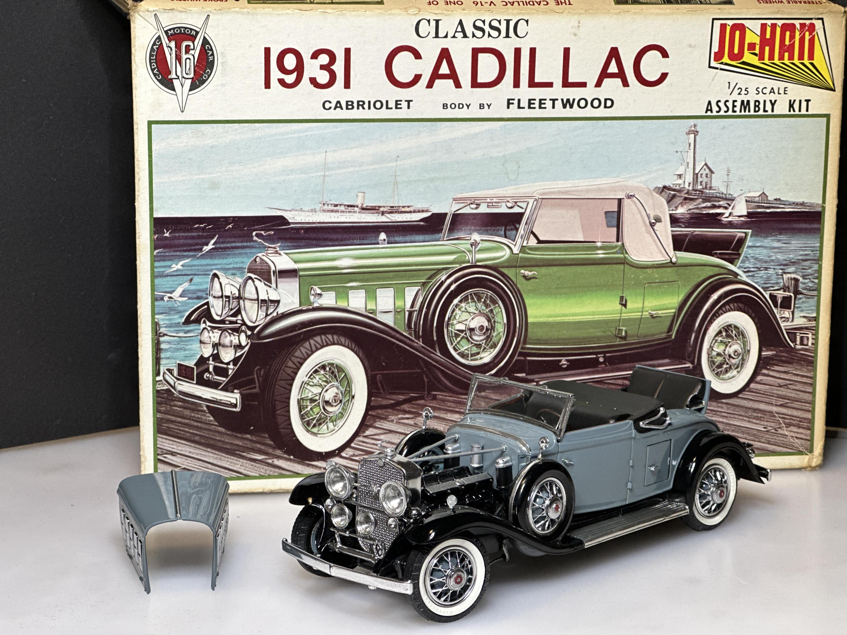 "Released in 1930, Cadillac became the first American car manufacturer to introduce a production car with a V-16 motor. In the early 1930s American car manufacturers were in a battle of “cylinder wars.” The likes of Packard, Franklin, Lincoln, Auburn, and Pierce Arrow all had created 12-cylinder cars by 1932. Marmon, a Cadillac competitor, thought about the idea of creating a 16-cylinder car in the late 1920s before Cadillac, but were unable to do so due to the lack of resources. Unlike many of the competitors in the high-end market, Cadillac predominantly offered complete cars rather than rolling chassis to be bodied by custom coachbuilders. Many of the 'standard' bodies were constructed by Fleetwood (Ultimatecarpage.com)." Jo-Han has released three of the Fleetwood styled bodies as 1:25 scale model kits first in the 1960´s: Two door Cabriolet, four door Sport Phaeton and four door Town Brougham. The kits were re-released and re-boxed in the 70´s. For the Town Brougham Jo-Han used as a template a car which was a result of 20 years of research and restauration work. You can read more about it´s history here: https://cars.bonhams.com/auction/23234/lot/43/1931-cadillac-v-16-series-452-town-brougham-chassis-no-703164-engine-no-7-3214/ All Jo-Han Cadillac 1931 models share the same chassis, engine, tires and lights. The kits have over 160 parts each and are very well detailed. The age shows, and the plastic was quite brittle, I broke several parts. The cabriolet was built in 2023. The Sport Phaeton and Town Brougham were finished just this week. The most challenging part in the building process was probably attaching the Town Brougham´s interior into the body, it was a very tight fit. Otherwise parts fit quite well. Painting the Town Brougham required lots of masking because of three different colors.