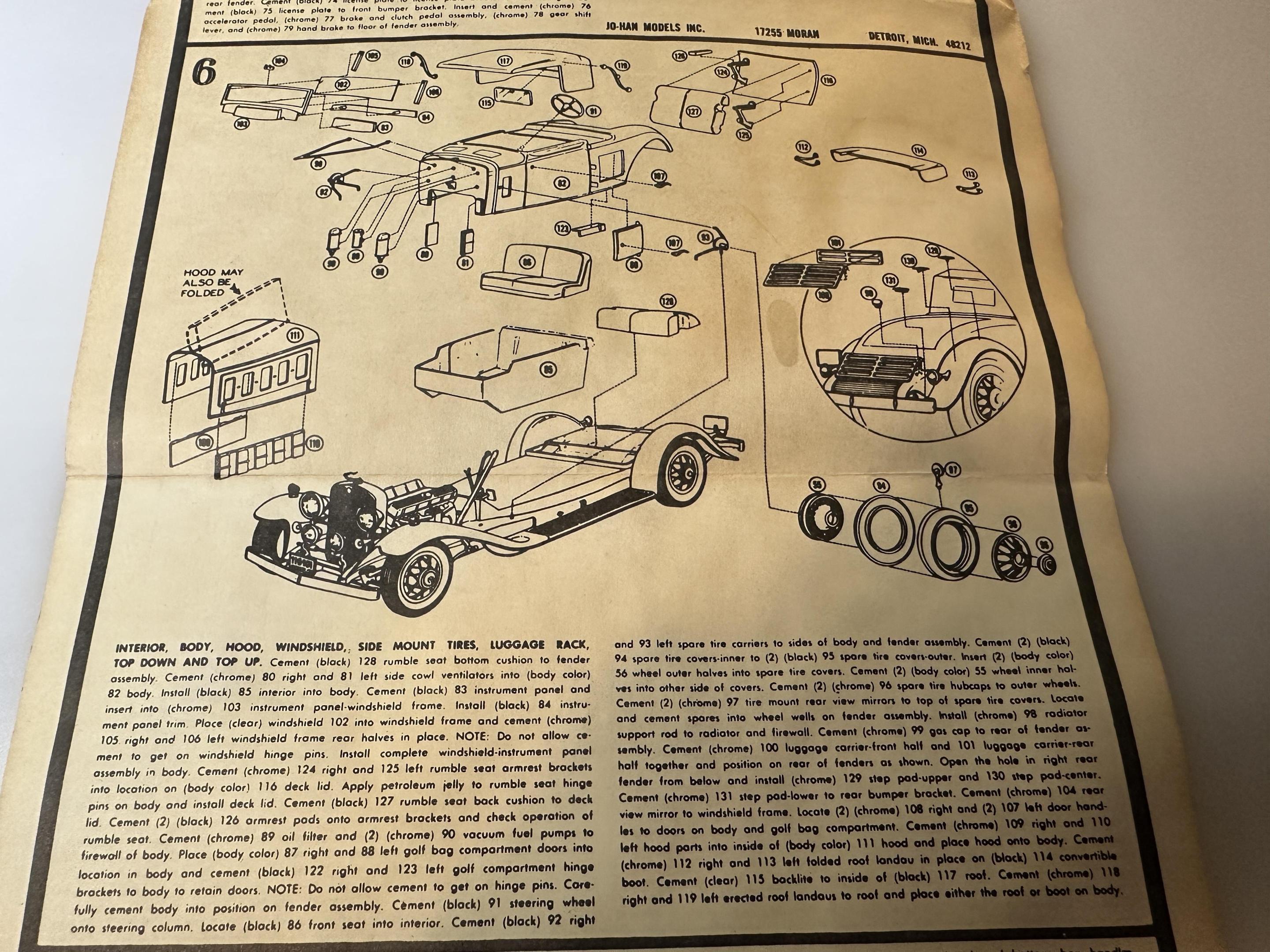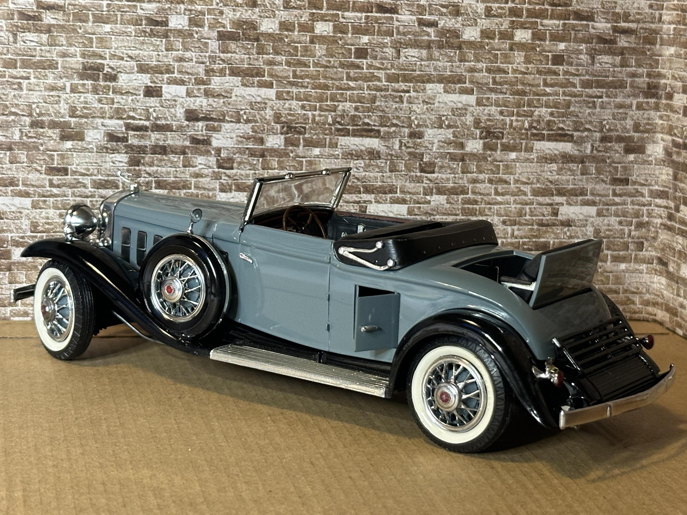 This Jo-Han kit was originally released in 1965, the same year The Beatles released the album Help!. My kit was a rebox from the 70´s (according to Scalemates). Johan has also released two other versions of the 1931 Cadillac, Town Brougham and Sport Phaeton, all with V-16 engine. I do have the two in the stash waiting. The model was built out of the box in the summer of 2023. Despite it´s old age the kit was very accurate but did have quite a bit of flash in the sprues. Building the model was quite straightforward although the instructions were a little different from what we are used to today. Biggest problem was deciding on the color, I finally chose this Tamiya Haze Grey (TS-32). In the finished model there is an operating rumble seat, a small locker for a golf bag on the side, opening hood and posable wheels.