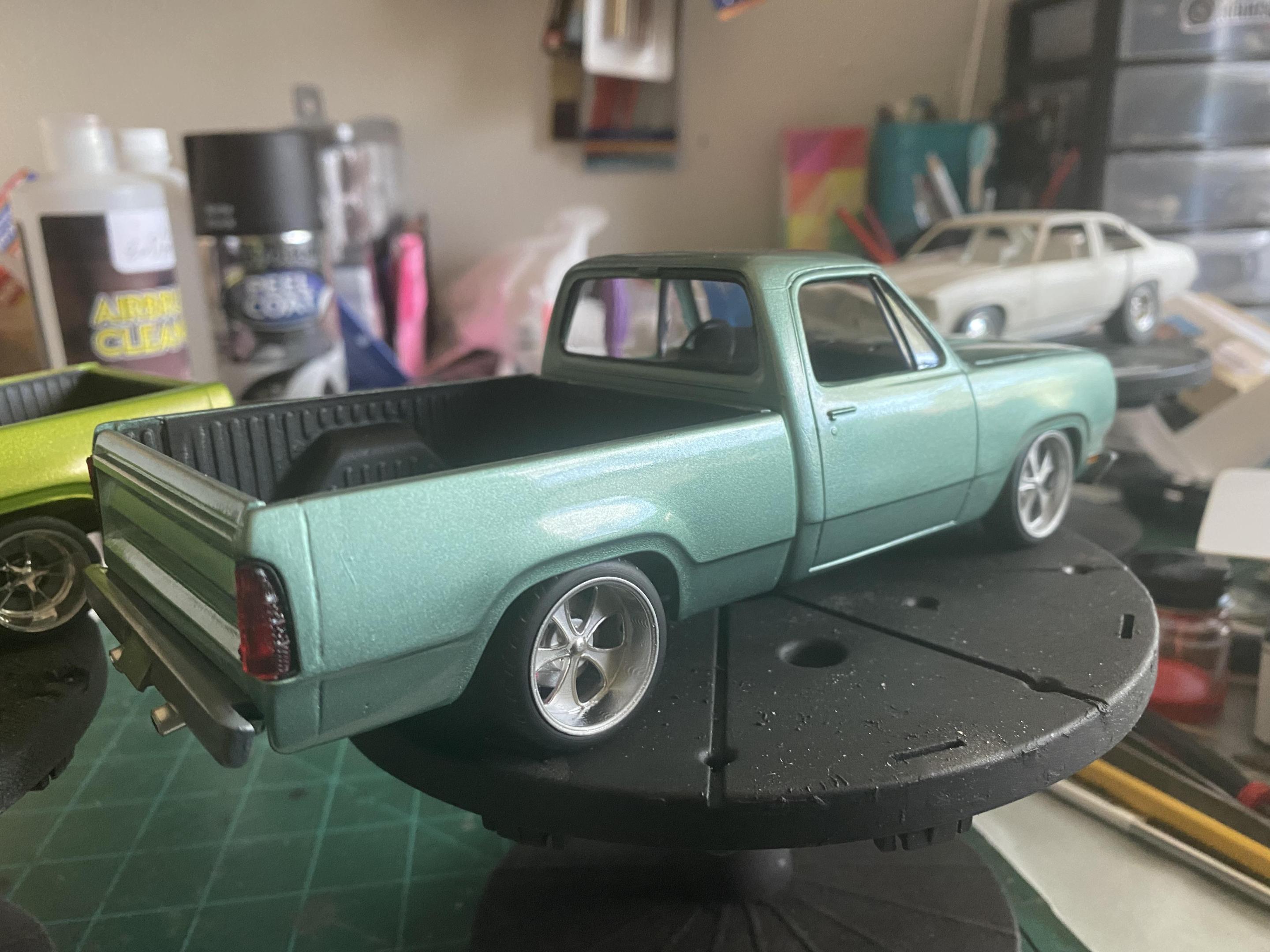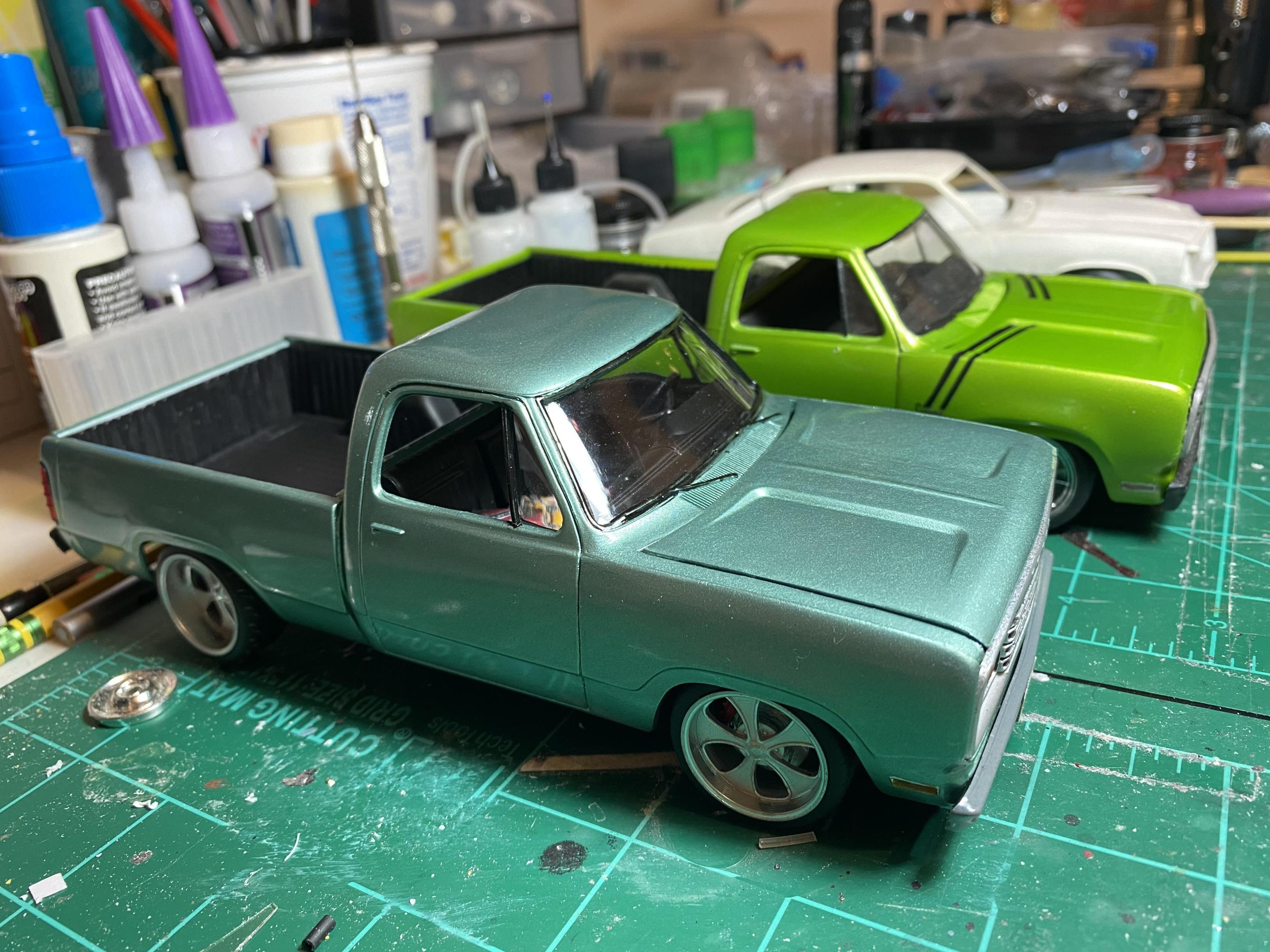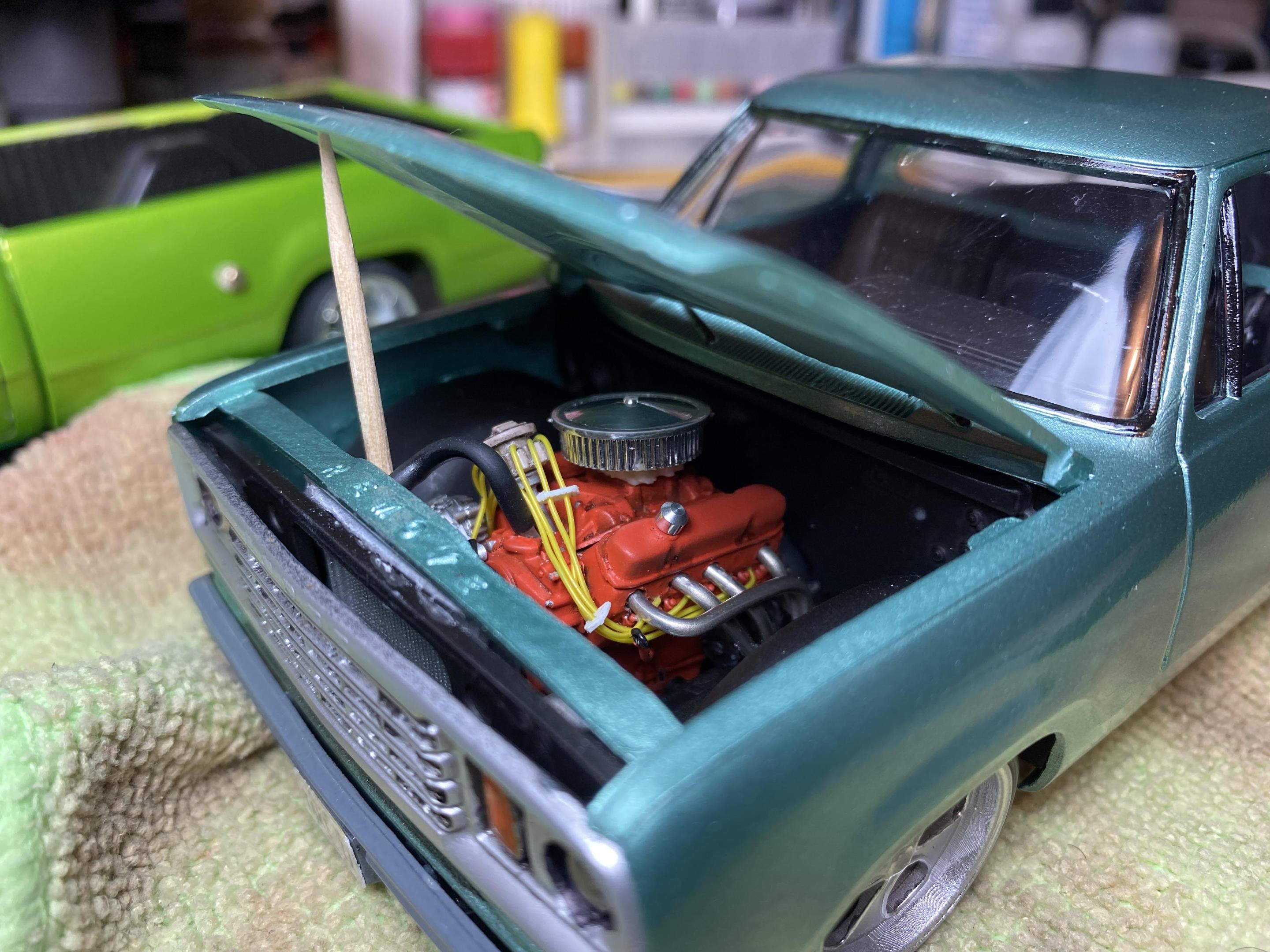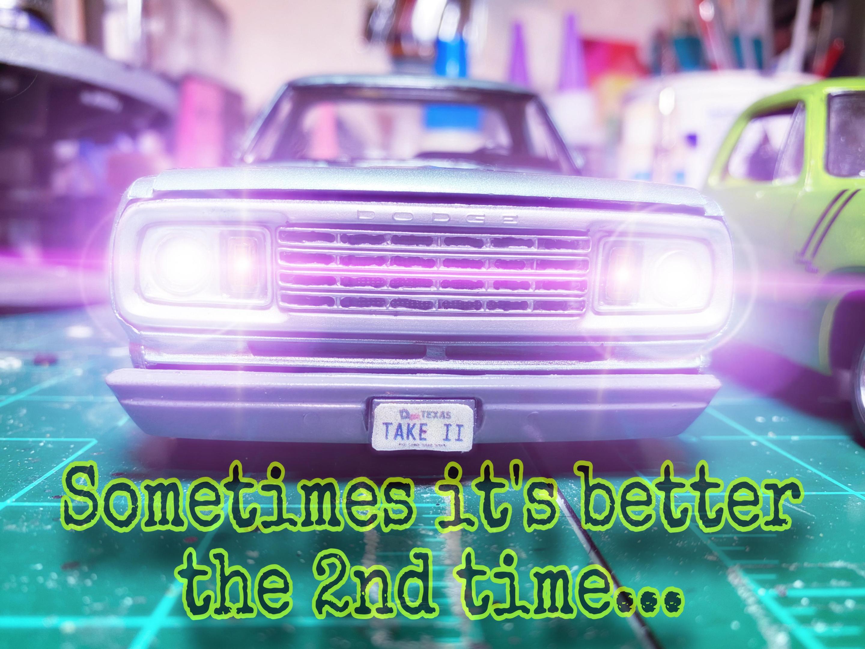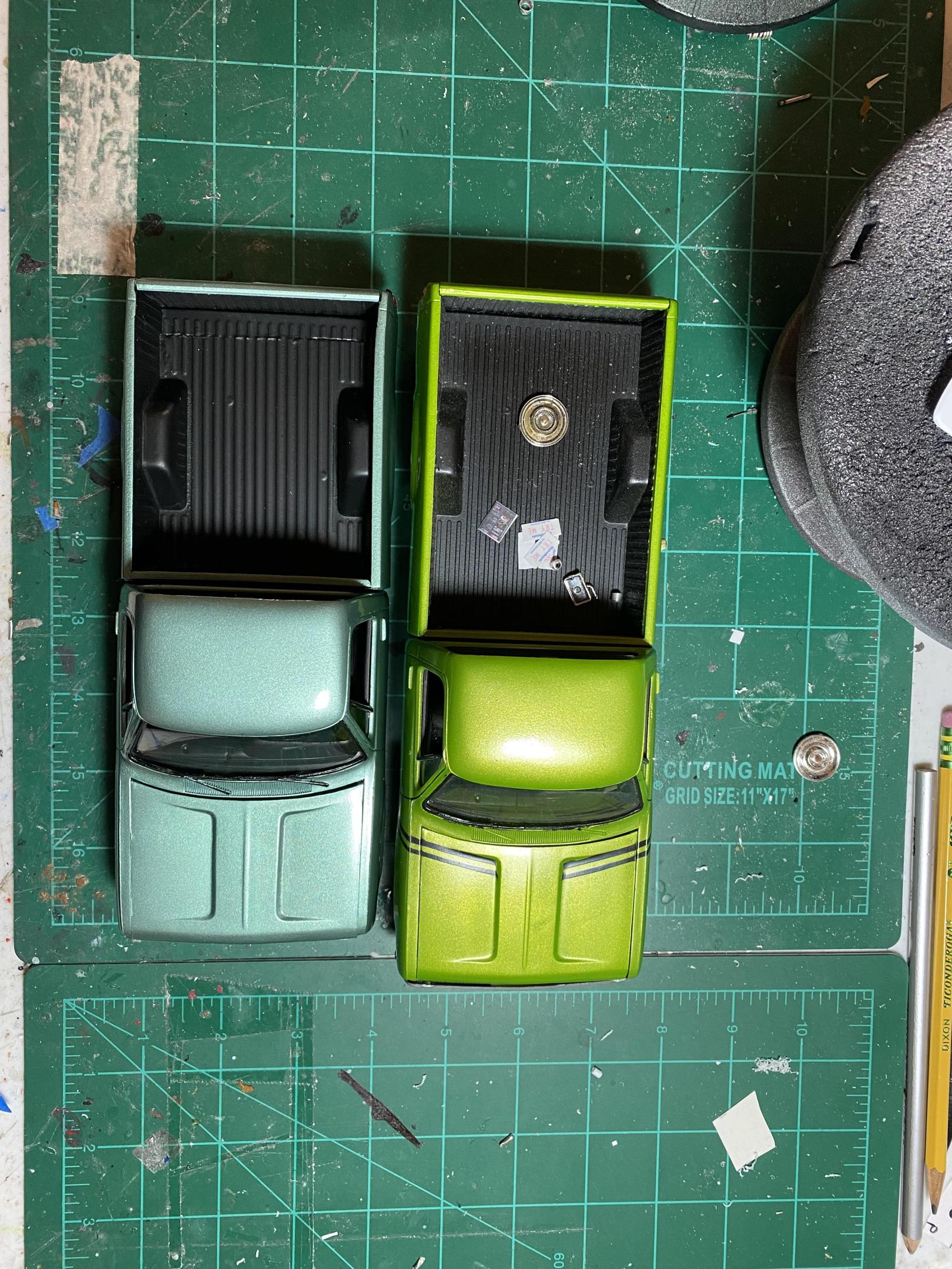 I just saw a post by another user here, jdhog, who was inspired by the same truck as I was. This was my second attempt at making a similar truck to the one I found on the internet/Youtube, so I named it “Take II.” It was made using a combination of the 78 MPC D100 and the Lil Red Express short bed step side kit (chassis) I found a Missing Link D100 resin short bed and used it as a template to cut down the MPC long bed. For reference, or to follow the build go to the KBCC Garage YouTube channel! Thanks jdhog for sharing your progress! I can’t wait to see how your project turns out! That color matching is amazing!
