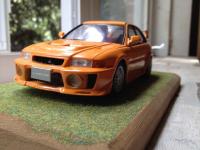 Hey guys! This is my first post in under glass even though i've been looking this site almost a year ago. The number of things I leaned is incredible! So Here it is,The Fujimi Lancer Evolution 5 1998. Build OOB,with white rims and flat black wing. The color is Tamiya's brilliant orange. Pictures were taken from my friends Iphone,but i swear ill get some better ones for the upcoming builds Hope The pictures will show up,if so,enjoy
