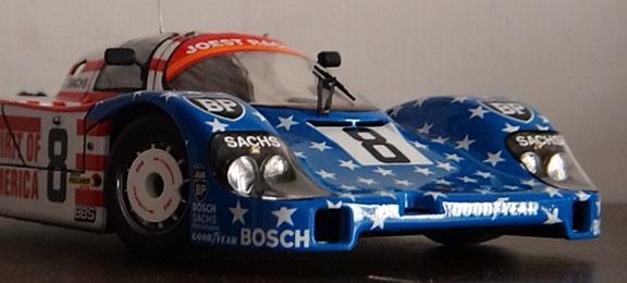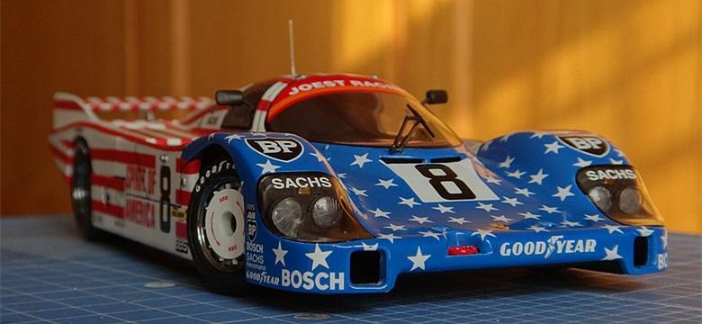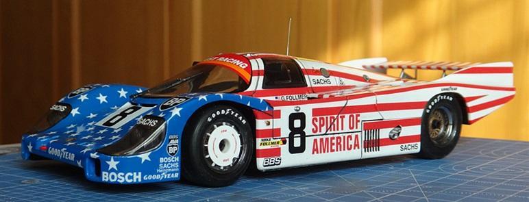 Good day guys. Today I finished 'spirit of America' which is a Porsche 956 raced in LeMans 1986 and listed third at last. I would like to say that on building models, sometime i really like to reject the old but crave for the new. Recently i bought some 1/12 big scale F-1 kits, they're really great and i just can't wait myself building them. So here is this 956, my all time favourite group C car, with a really nice decal, an flag of USA. I didn't do the engine..becasue i just put this car body on my old tamiya porsche 956's chassic. Tamiya's 956 is a good enough kit that i can easily remove the car body. So here she is: had to mention that the decals on the front window should be white withe black words 'joest racing' , but unluckly i messed with that decal with some glue..so i chose the 84' Newman 956 #8 to replace it for now. Maybe fix with homemade decals next time. this time i tried a little bit different tools called 'electroplating powder'. i used this powder on wheels and front lights and i think the result is good enough to me. To sum up, i still have another 6 porsche 956 waiting for me i really like this car. Such a legend. any comment welcomed and thank you guy for watching.:)