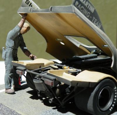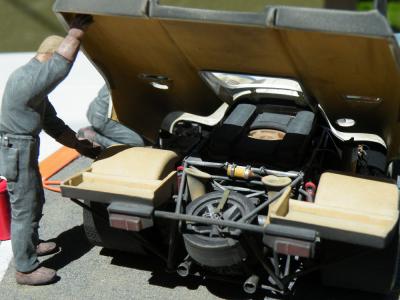 V-12 twin-turbo diesel engine in a race car? I really enjoyed building this Revell kit, a departure from my usual subjects. It is an older issue I got off ebay and I think the decals must have gotten damp at some point because I had a devil of a time with them. They would NOT release from the paper backing even after many minutes of soaking, I had to use my tweezers to get underneath and peel them off, very tense work. All in all I think it came out well and looks good on the shelf, an important milestone in racing history. Comments welcome, thanks for looking. The engine cover fits better than the photos, I just realized