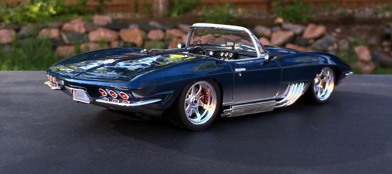 Had this snaptite in my stash for years, decided to do a one-day build. I have to admit this AMT kit actually is done very well, no flash of any kind, everything fit perfectly and amazed of the detail included the decal set is one of the best I've used, as for gauges. I didn't like the kits ride height, sat too high, so I did modify the one-piece chassis/suspension to accomadate the Pegasus wheels instead of the stock wheels, added disc-brakes, just because I'm not a box stock builder. The "paint" actually is the molded and painted out-of-the-box, it polished up very nice. I did not paint this, 5-hour build but decided to paint and detail the interior and chrome trim with my Molotow pen. Neat little quickie build to break the big detail builds burnout.