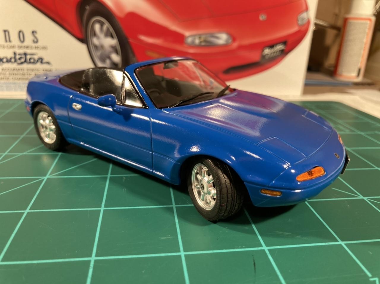My latest build, a 1990 Eunos Roadster by Tamiya. I used to own a Mariner Blue ‘90 Miata so I had to paint this one blue too! It’s Krylon Colormaxx gloss “True Blue.” The finish has more orange peel than I’d like, but I don’t have the patience for wet sanding and polishing ? It’s good enough for my shelf! Not much else to say really, this is a pretty simple curbside kit that goes together nice and is a quick and easy build.