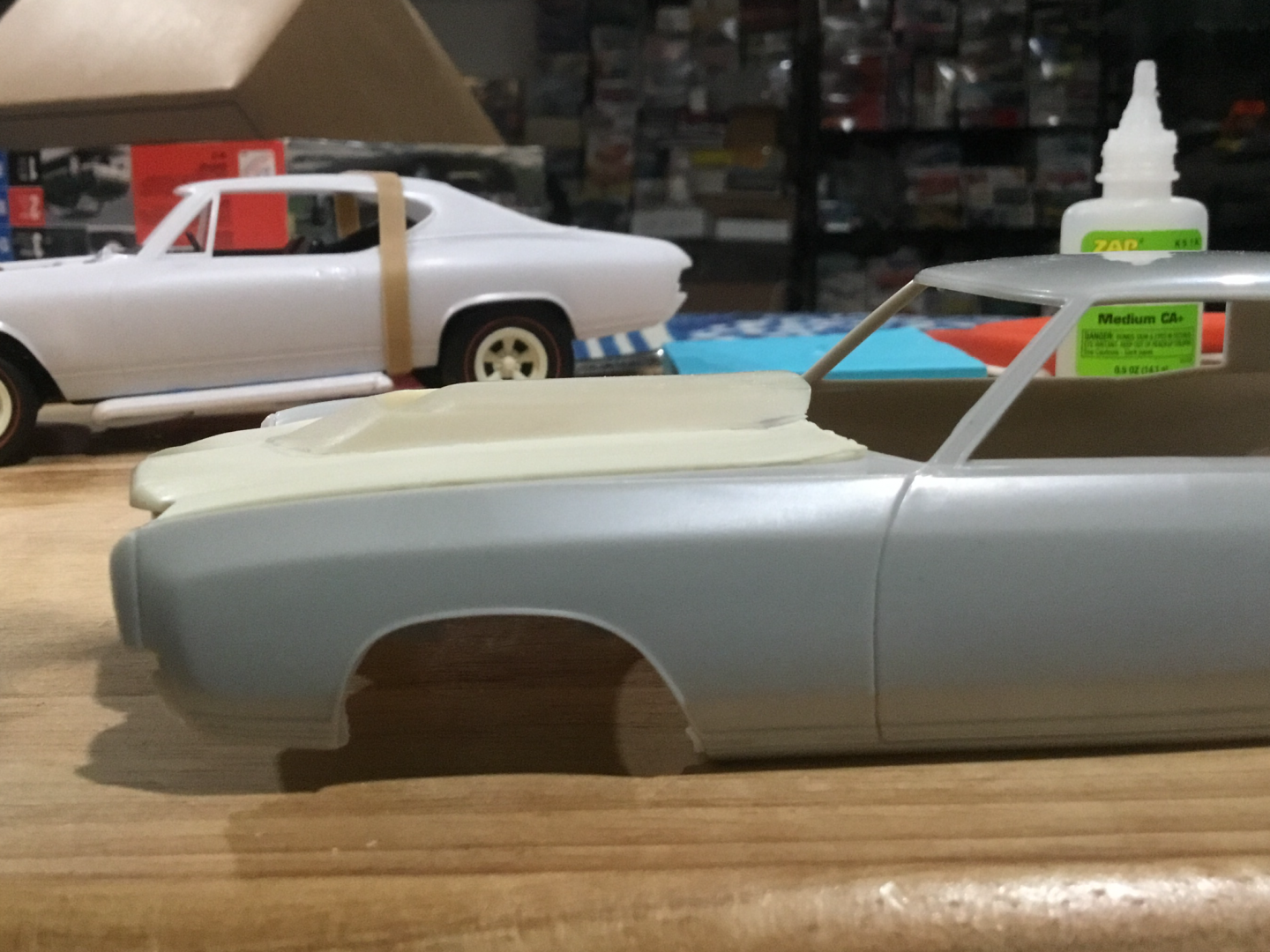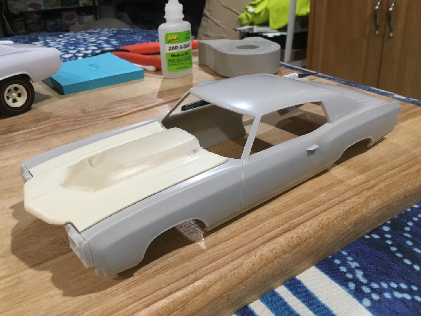 The 1968 Baldwin Motion hood is in a mold box and awaiting silicon molding. But that won’t happen until Wednesday night. In the meantime, since I will be pouring silicone, I figured I would pop out another custom hood for casting. As you may have guessed from the title, it’s a hood for a First Generation Monte Carlo. Baldwin Motion never offered the Monte Carlo as a package in their Phase III line up, but I have always wanted to build a “what if“. The L88 hood was and natural choice for me since that’s what they put on the 1970 Chevelle. Plus the Monte Carlo has such long hood, the could be made longer, as on the 1973 and later Corvettes. I would also like to put the 1969 Camaro cowl induction hood on a Monte Carlo hood. It too will need a little lengthening.
