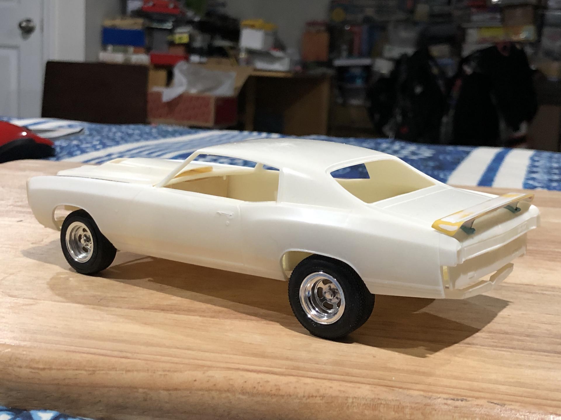 Below are some slot car bodies I made for a friend. He had a pretty good stash so we worked out a deal where I got a kit of MY choosing and he would select a kit for the body. I would detail out the body for him and get to keep all the rest of the kit for parts. The silver Super Bee turned out really nice. Note: the wheels shown were only for mock up pics.