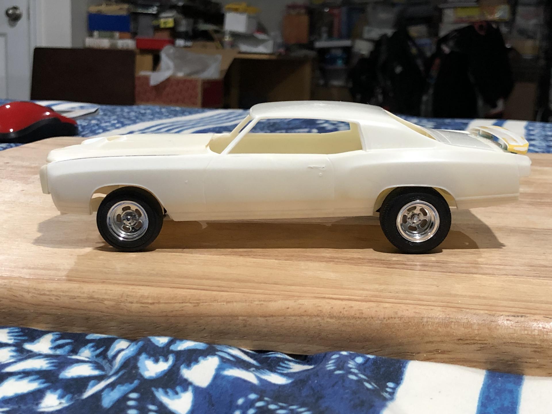Ever since I mastered and cast this L88 hood for the 1970-72 Monte Carlo, I’ve been itching to build a “what if” Baldwin Motion Monte Carlo. I know Baldwin Motion never offered to modify the Monte Carlo when they were due. I’m hoping this will follow in the spirit of a Motion type build. The tires are from the Baldwin Motion 1971 Camaro. I cast these slotted wheels for my Baldwin Motion Phase III Corvettes. I felt that the Buick GSX deck lid spoiler fit the Monte Carlo pretty well! I’m thinking of using the GSX chin spoiler too. I look at it this way, if Baldwin Motion could get a Chevrolet Biscayne to do the quarter mile in 11 1/2 seconds, the Monte Carlo could’ve been done too. I’m going to send these pictures to Joel tonight and see what he thinks. I’m also going to ask him if there was a reason behind excluding the Monte Carlo from the line up. As always questions and comments are welcome.