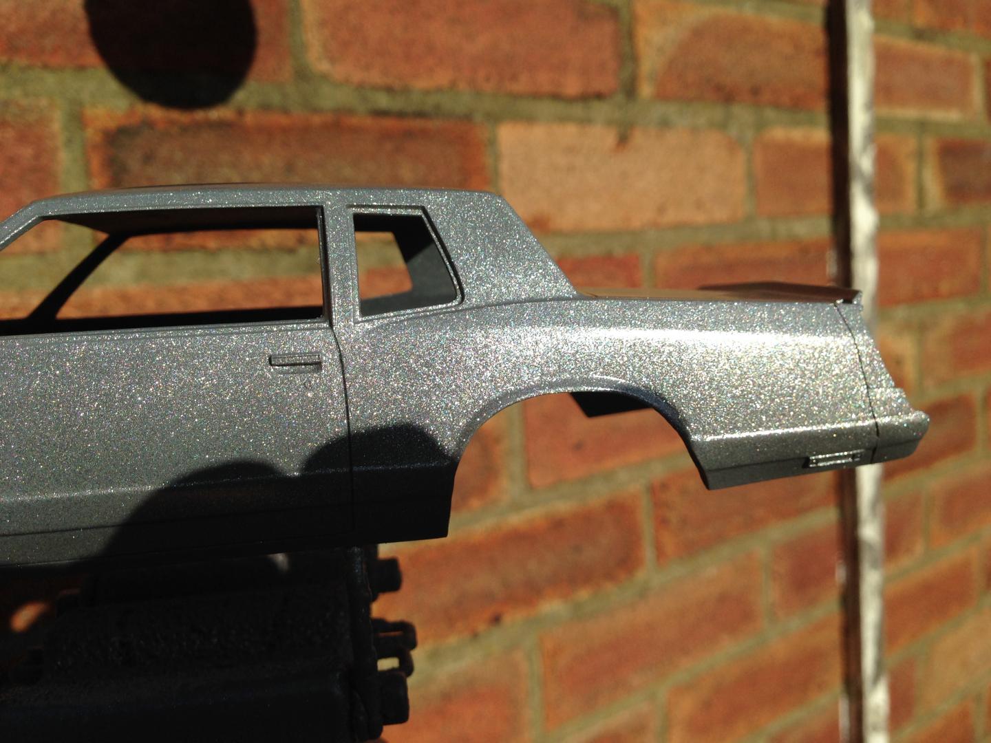 The Idea behind this build was to create an 80's street machine. You know, that boastful, arrogant, tire squealing jerk who would cruise up and down your local main strip listening to AC/DC and twisted sister honking and yelling at all the young girls on the sidewalk. Yea that car! A little background about the build. It started as an aerocoupe and after mucking up the paint on that body I decided to switch the body to flatback monte. It has fought me the whole way. First black paint job was sub-par so Into the brake fluid it went. Second attempt was black again with Tamiya black TS-14. After the mist coats were applied I sprayed the first heavy coat. Bam, Milky haze. No worries, some good advice from the good people at MCM and I was able to save it. Another heavy coat and everything came together. This build has been a lot of first for me. Many parts were scratch build and I really have taken my time with it. I promised myself no new kits until I see this one through. I will not let a black paint job defeat me On with the Pictures Beginning stages of the scratch made cowl hood Black paint job Custom fuel tank, fuel filter Chassis 454, wired, custom headers, dipstick, ect. Interior primed Stance Rear view-exactly what I was going for with the gas tank. I still have lots to do-Have a couple small paint flaws to work out, 3200-12000 and a good ole buff should take care of that. Interior will receive flocking, roll bar, and racing details. Thanks for looking, comments always welcome! Cheers, m!ke