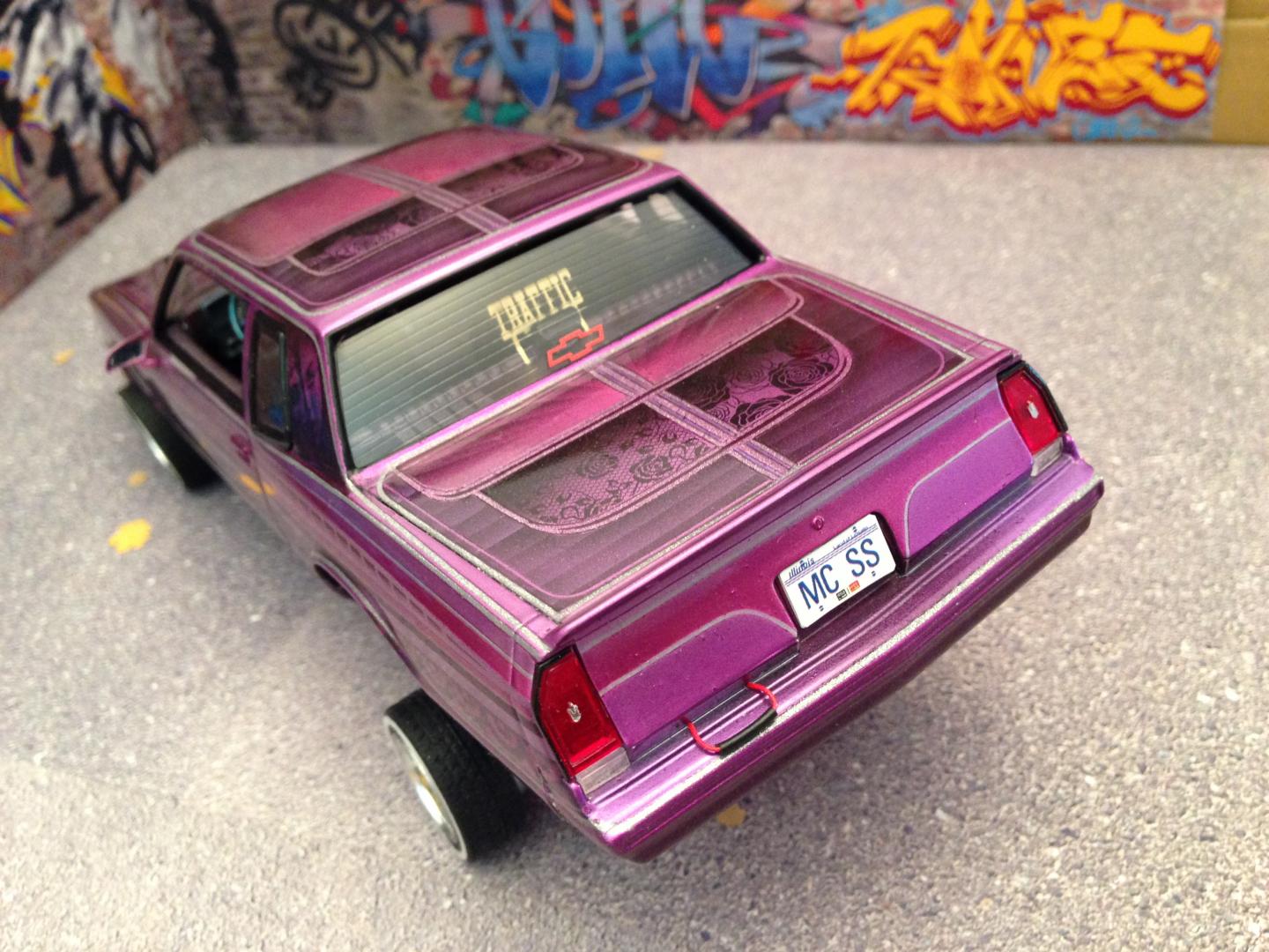 I'm going to build this as a hopper, because while I was watching YouTube for lowrider research, I became amazed at the pounding these cars get, especially the hoppers. I really like it when the car 'statues' and balances on its rear bumper. I'll paint this with nail polish and rattle cans and also use a few decals.