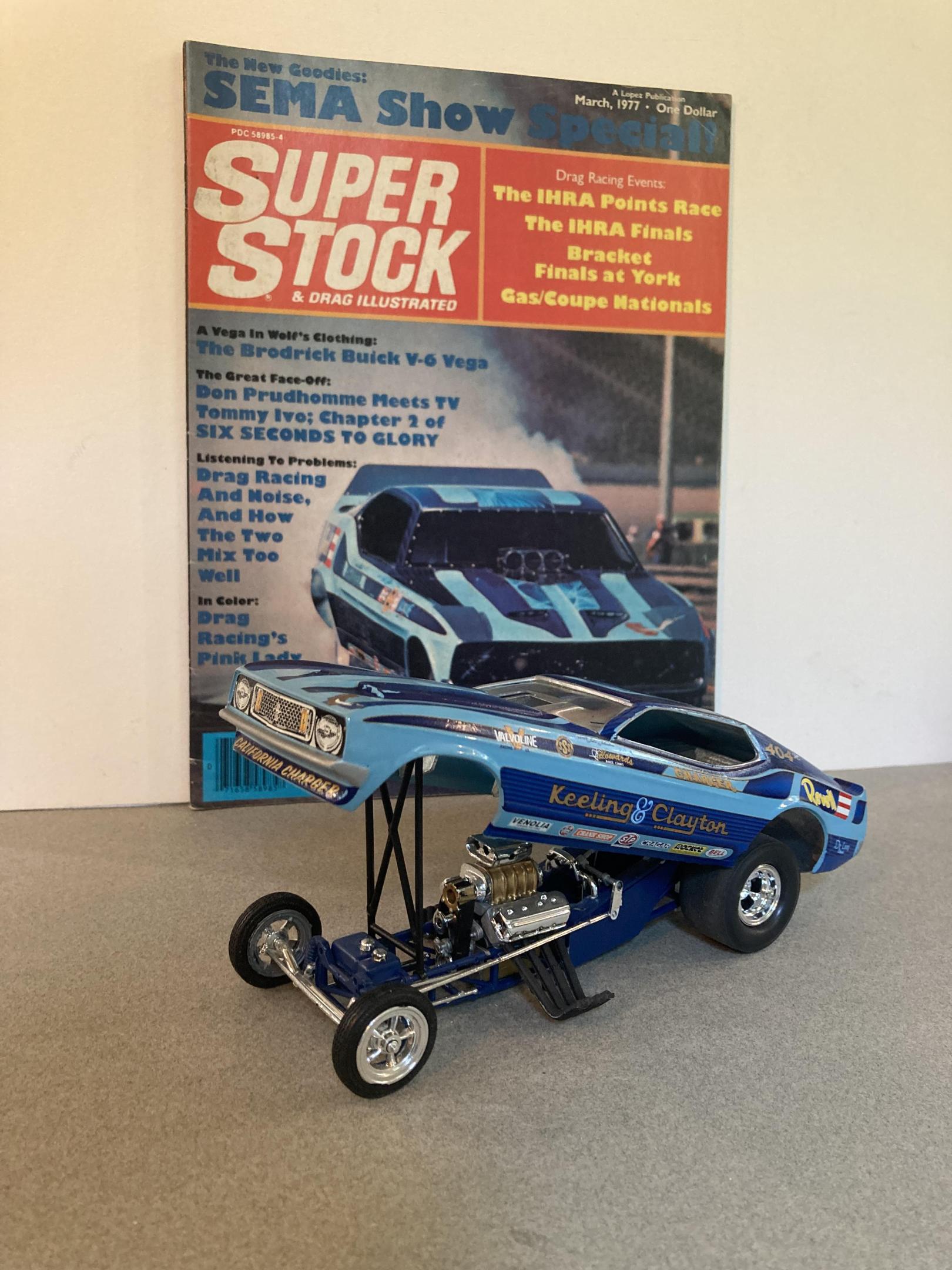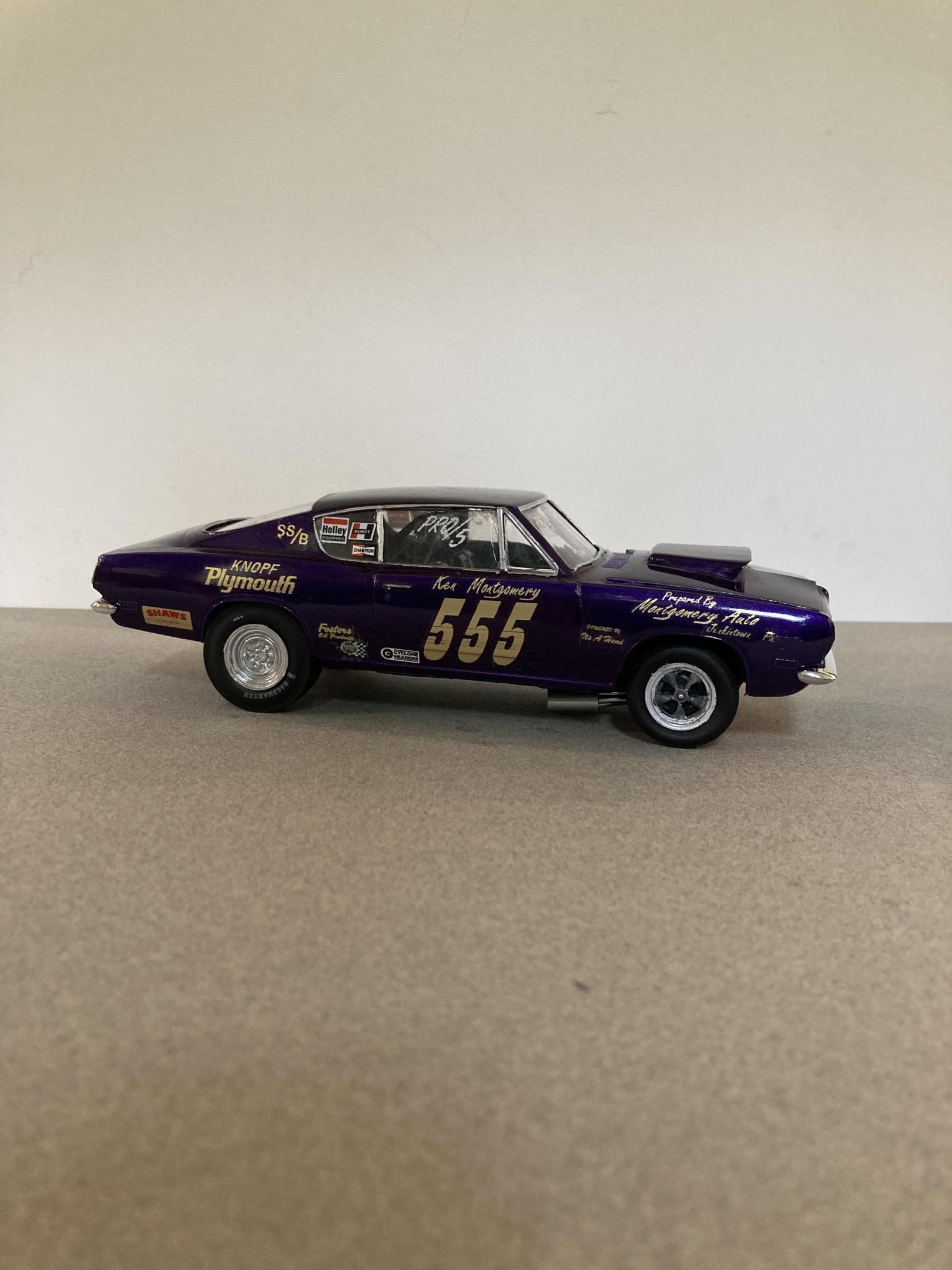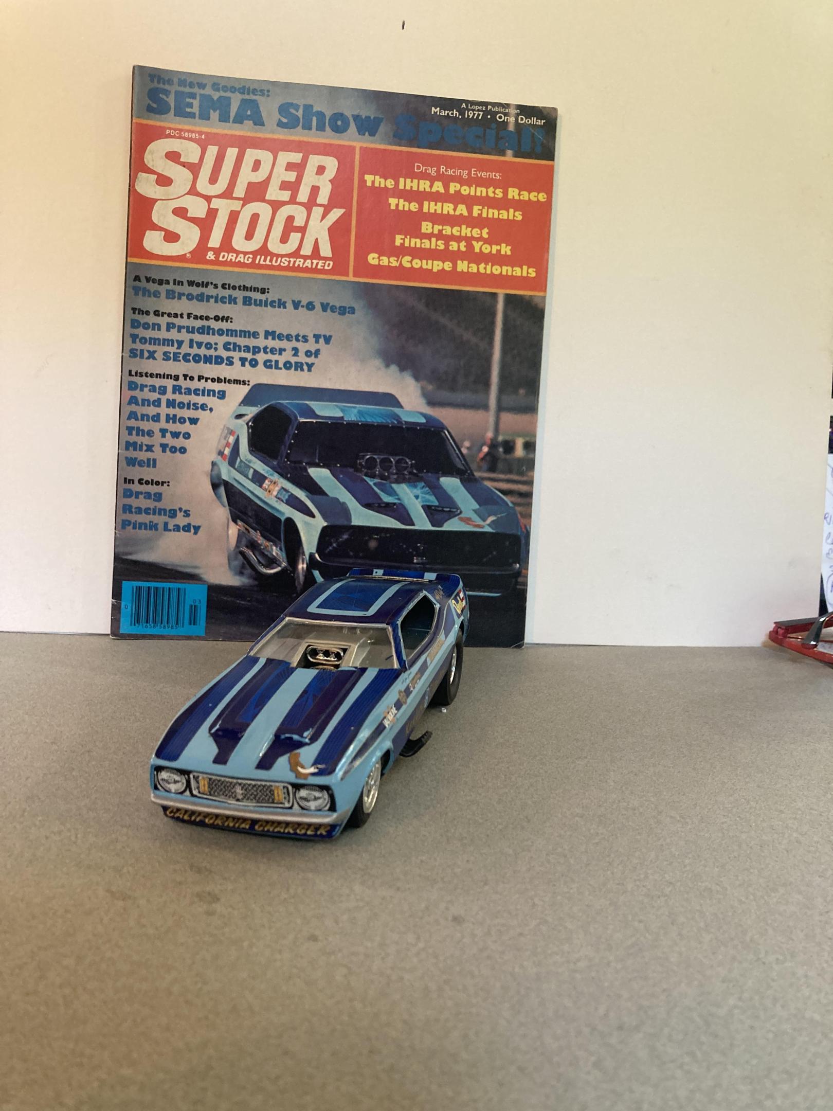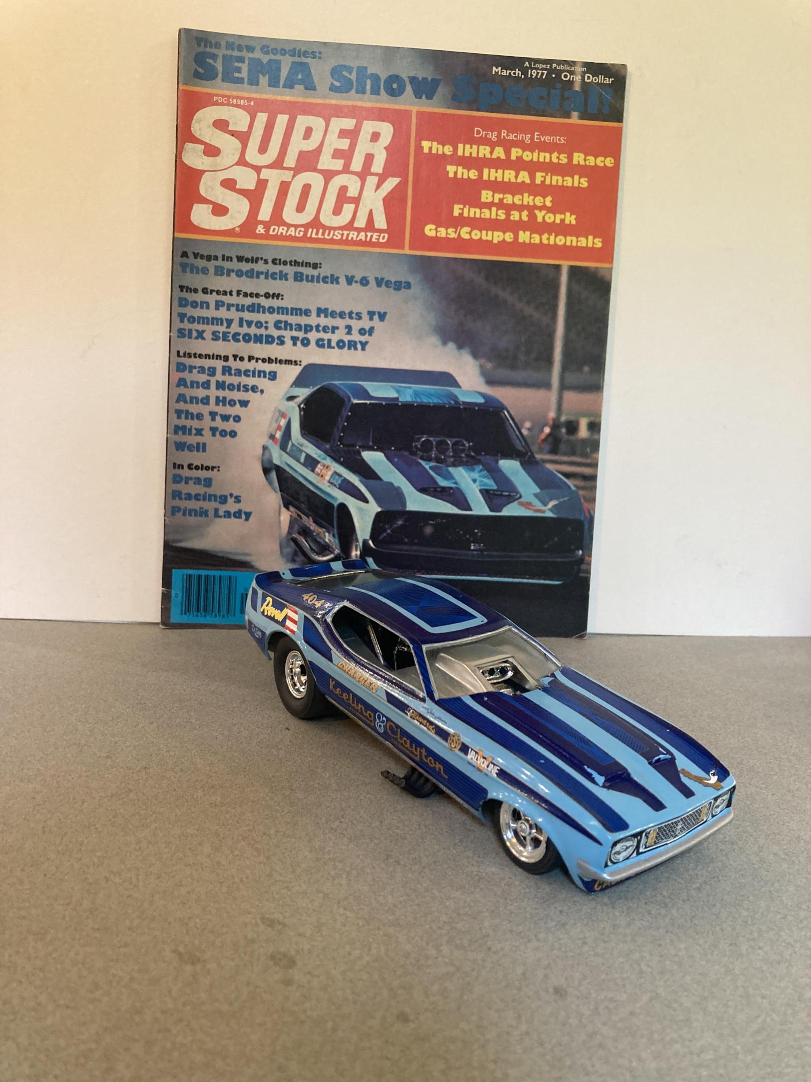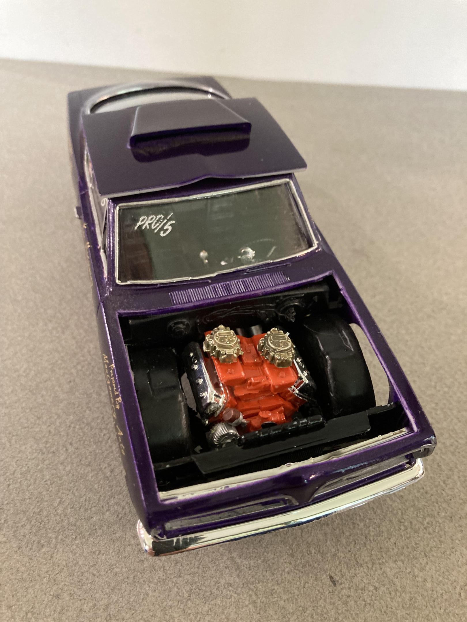 This car represents the early days of pro stock or heads up super stock. The mpc kit has just about everything you need I added the correct wheels, and made up a set of headers out of solder and aluminum tubing I also added side windows which I cut from clear plastic sheet. I covered the body in testors purple lacquer with wet look clear. The decals are from smp. This mpc kit is a all time great , and builds up real fast and easy it’s not overly detailed like the modern tooling of today’s new kits . I’ve built quite a few of them into super stockers and they all look great on my shelf. Until next time thanks for looking ?, Mike