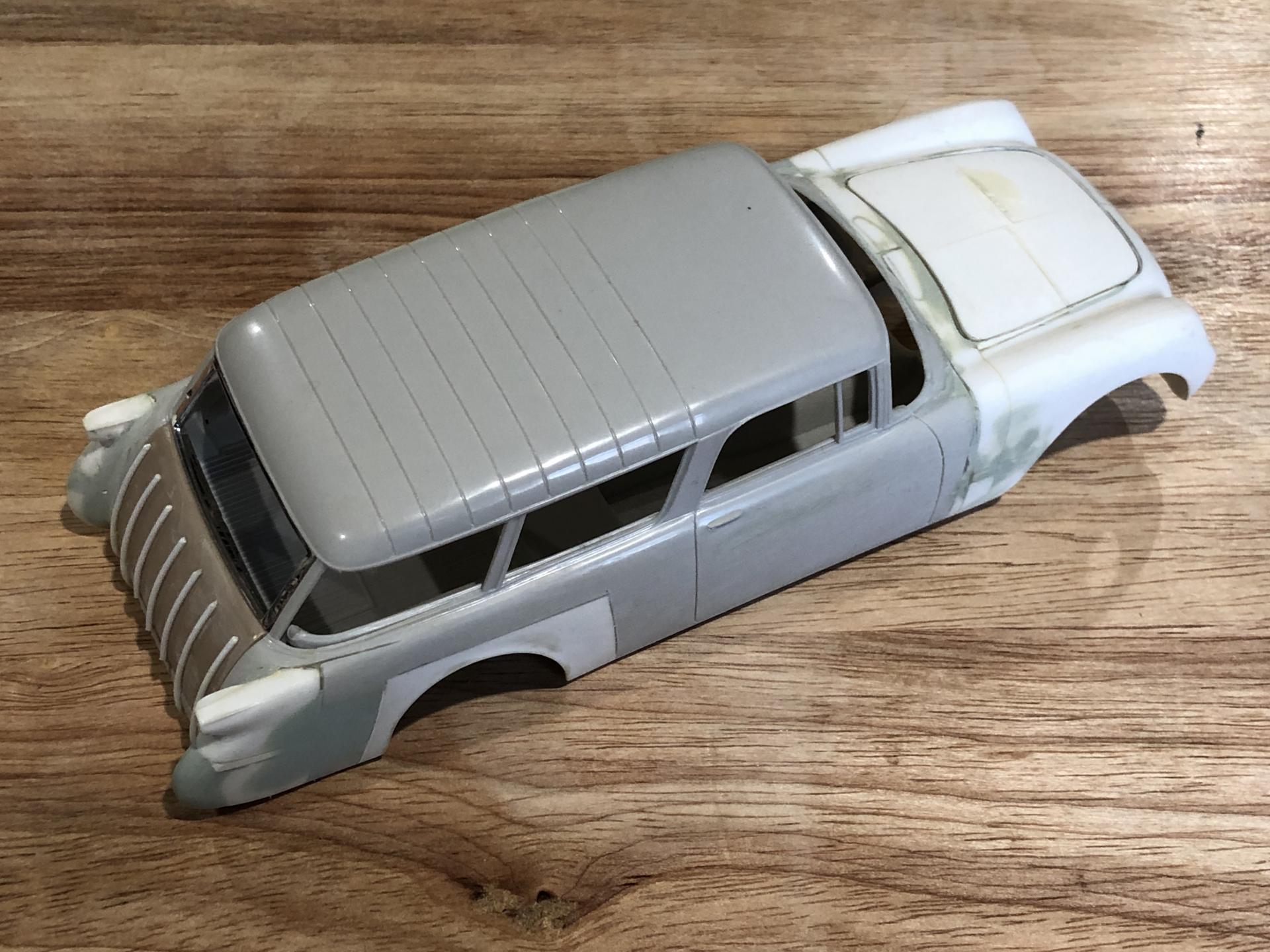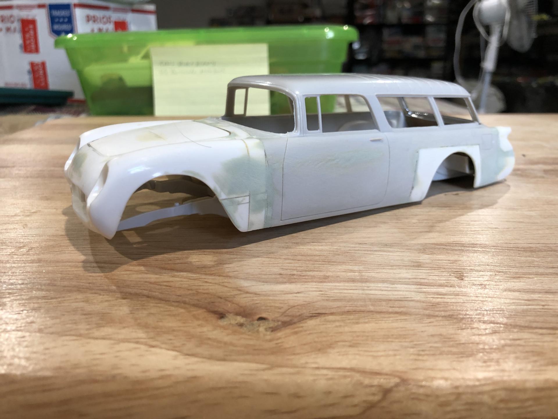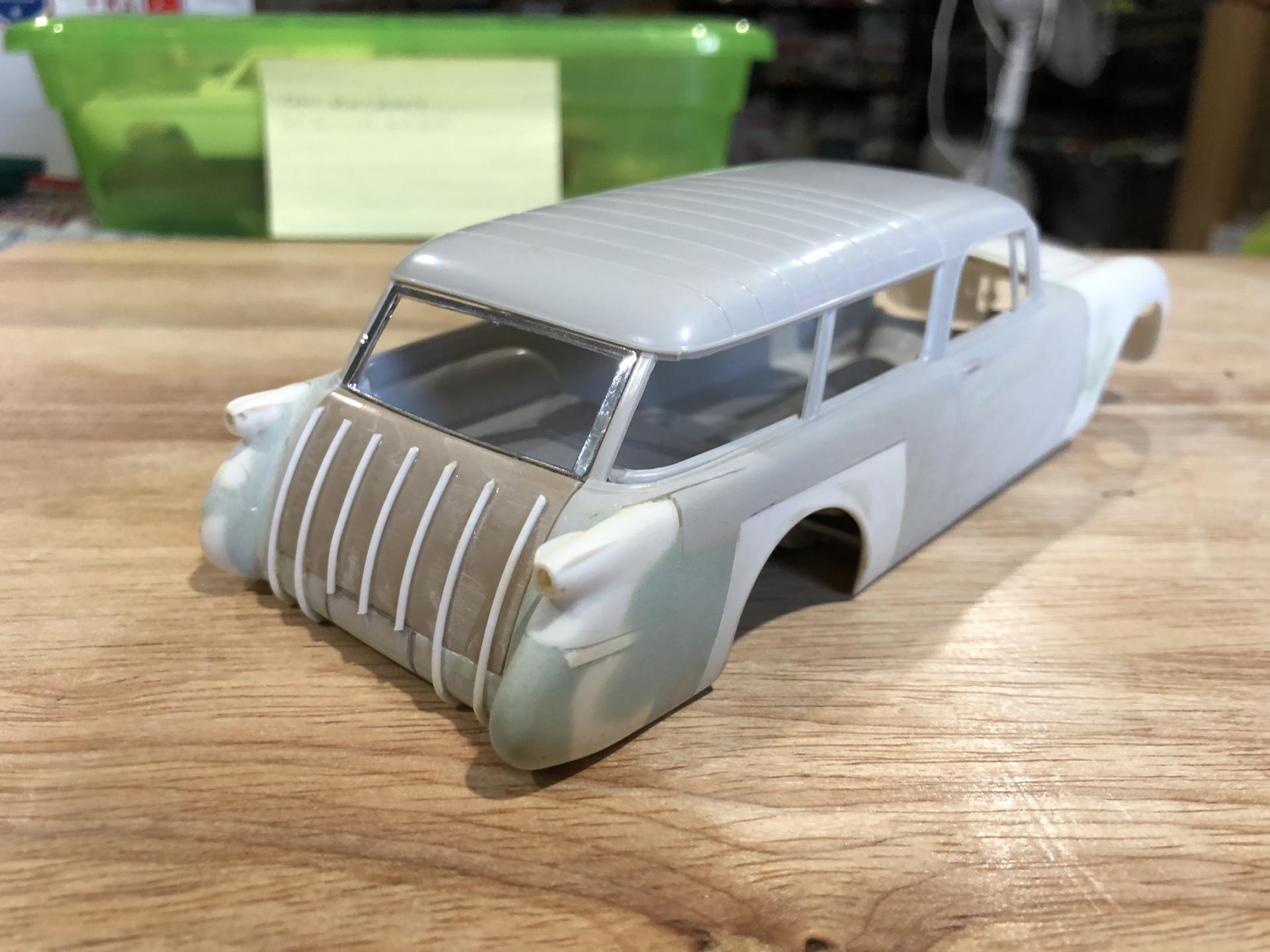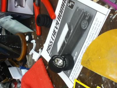 Up next on the to-do list. My version of the Revell Cali Wheels Nomad. Gotta have them Supremes. Flattened out the hood abit. Pretty straightforward under the hood. Final ride height should be just a tad lower than this.