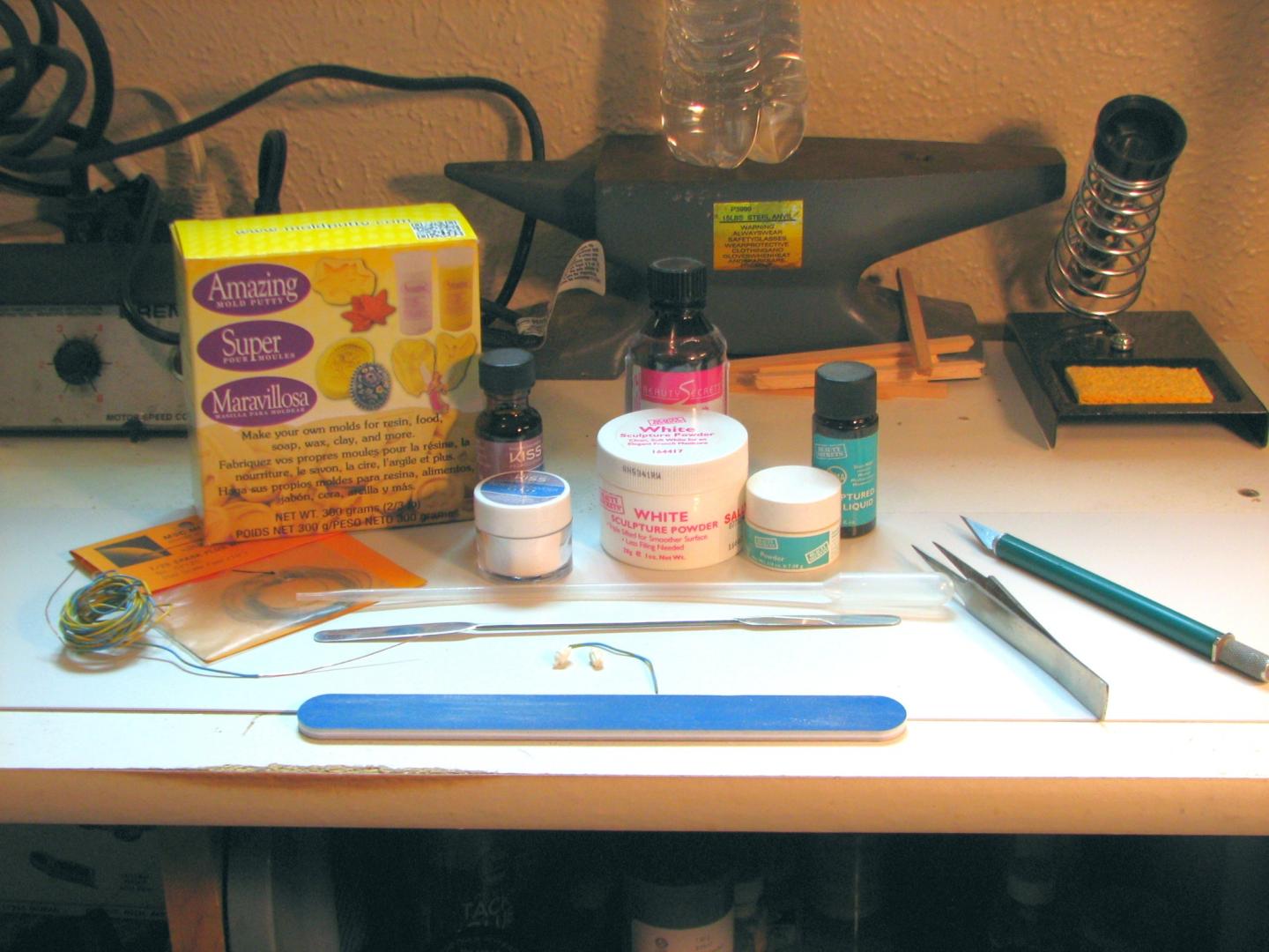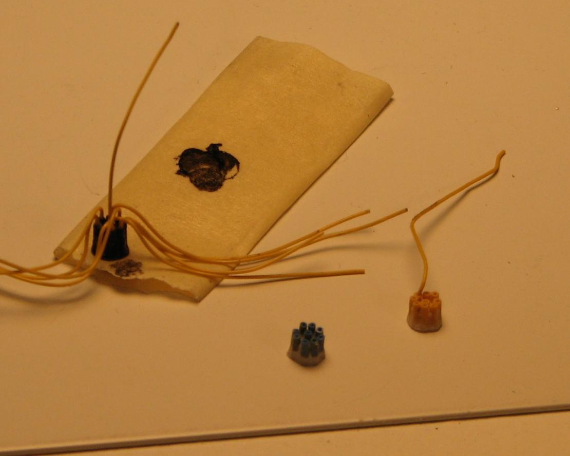 I mentioned this in the thread for my 1975 NHRA Modified Production '70 Malibu. It's a quick and easy way to make pre-wired distributors using readily available, and fairly inexpensive supplies. Begin by assembling the tools and supplies required (chefs call it mise en place). The first photo shows what you'll need. I got my mold putty through Amazon. It's made by Alumilite, so it's likely that Hobby Lobby has it, as well. You'll also need acrylic nail sculpting compound. It's a two-part system that is available from Sally Beauty Supplies, or, the Kiss brand is available in Walmart (at least those with larger cosmetic sections). The rest is stuff you likely have on-hand. Items include X-Acto knife, tweezers, sanding board or sandpaper, phone wire (or equivalent sized vinyl tubing), your choice of scale plug wire, a dropper for the acrylic liquid, a spatula to transfer the acrylic powder, super glue (I prefer a gel type, for this application), and a distributor with pronounced "lug" detail. Begin by mixing equal parts of the mold putty. A note about the Amazing Mold Putty--it's non-toxic and food safe. That's always a good thing! Once the putty's mixed, press the ball onto a flat working surface, insert the kit distributor, top down, and wait. The putty will cure in 15-20 minutes (to ensure a quicker cure rate, I usually pull a desk lamp down near the mold, to provide a bit of extra warmth to the reaction). Now is a good time to cut the wire insulation into lengths of about .100". You can also cut your plug wires now, too (just be sure to cut them long enough, so that they'll fit your engine of choice.). Once the mold has cured, remove the kit distributor from the mold, and check the mold for imperfections. Bubbles aren't a problem with this putty, so, your mold should be ready to go. Now, begin inserting the wire insulation into the depressions inside the mold. Be sure they are aligned properly--they should plug right into the holes. Continue until all the holes are "plugged". Next, draw a small amount of acrylic liquid into a pipette or dropper, and flow it down the inside edge of the mold, until it covers the bottom of the mold. Follow the liquid with a small amount of acrylic powder. Repeat this process until the mold is topped off. Wait...the acrylic resin will cure in a few minutes. Again, the lamp can help to speed the reaction. Pull the new distributor from the mold and inspect it. If it's satisfactory, grasp the distributor with pair of tweezers, and work it back and forth across an abrasive surface (sandpaper or a sanding stick), rotating it in the tweezers every few strokes, to keep the bottom level. Once it's sanded flat and smooth on the bottom, the distributor is ready to finish, and add plug wires to. Paint the cap to represent the brand you want it to be (Accel, Mallory, etc.). When the paint dries, dab the tip of a length of plug wire with super glue, and slip it into the hole in the end of a piece of the wire insulation, which has become the nipples on the cap of the distributor--and they all have a perfectly sized hole for the insertion of the plug wires! Insert all nine plug wires (for a V-8), attach the cap to a distributor base, and mount it to the engine. Now, simply run your plug wires home and you're done! For a minimal investment in materials and time, you can create a mold that will provide many distributors for wiring, without the difficult and often frustrating task of drilling all those holes without blowing out the side of a distributor, and ruining it, and wasting all the time you spent on it, up to that point. Hope you all find this helpful and informative! Comments and questions are welcome!