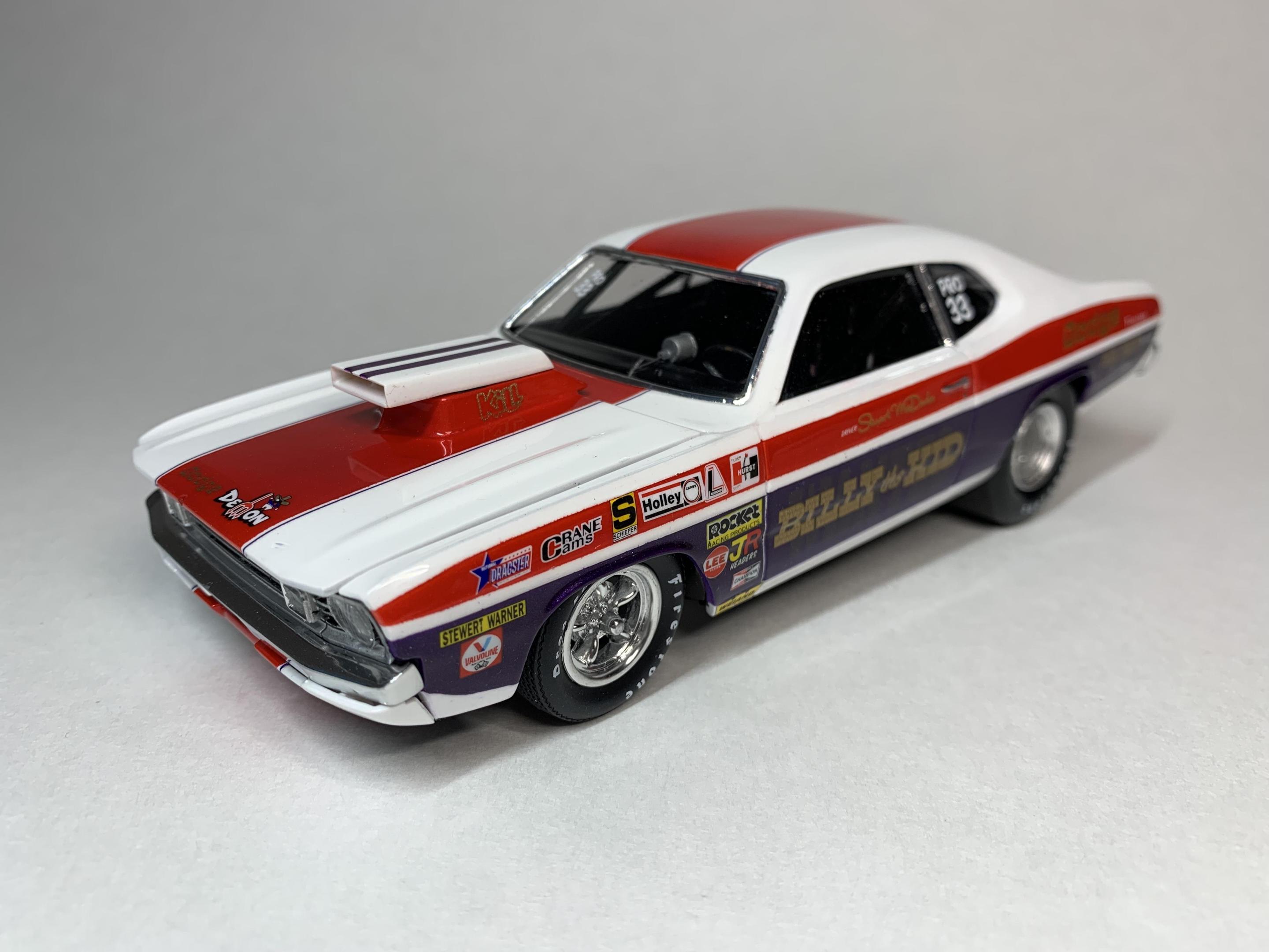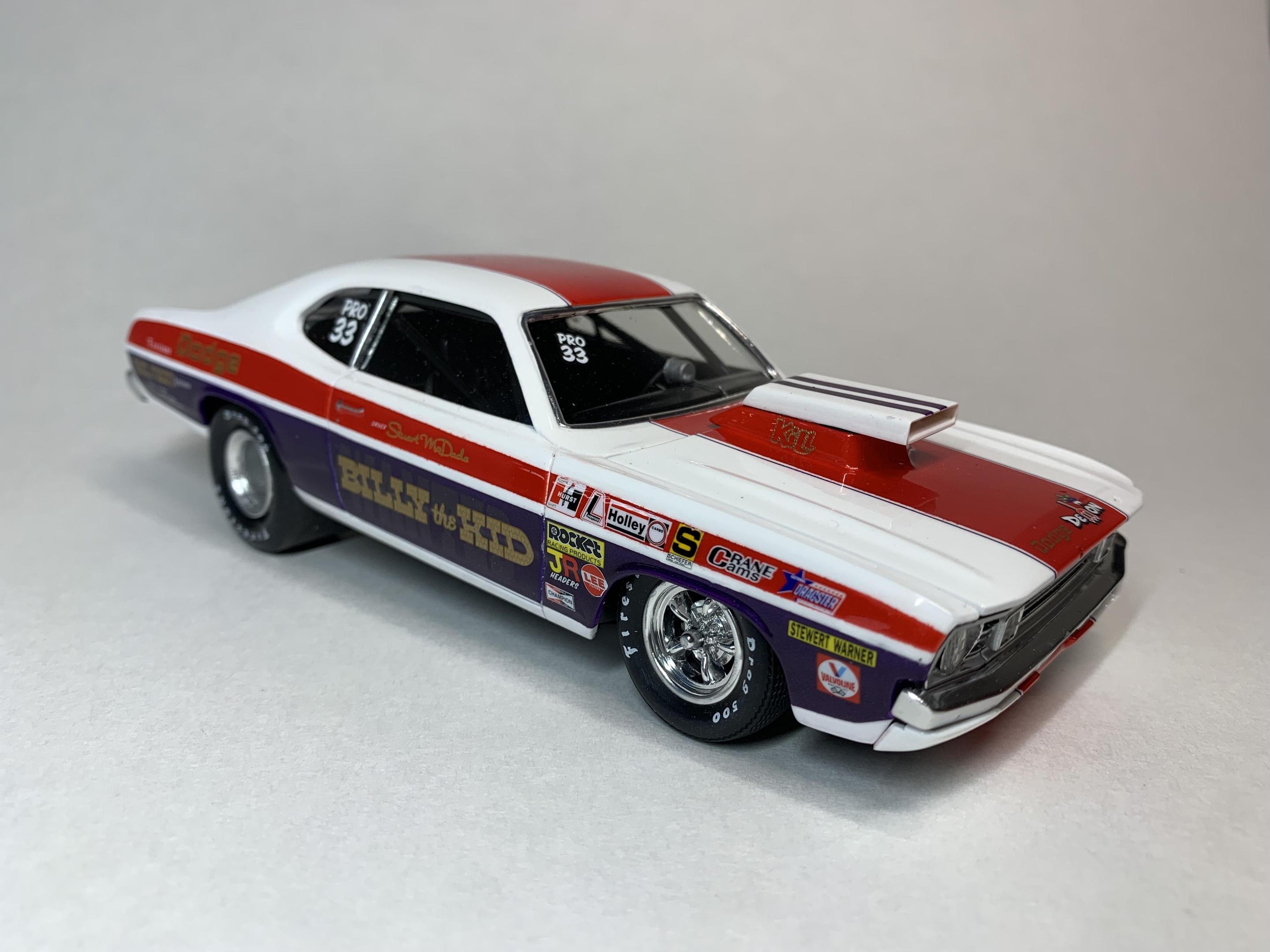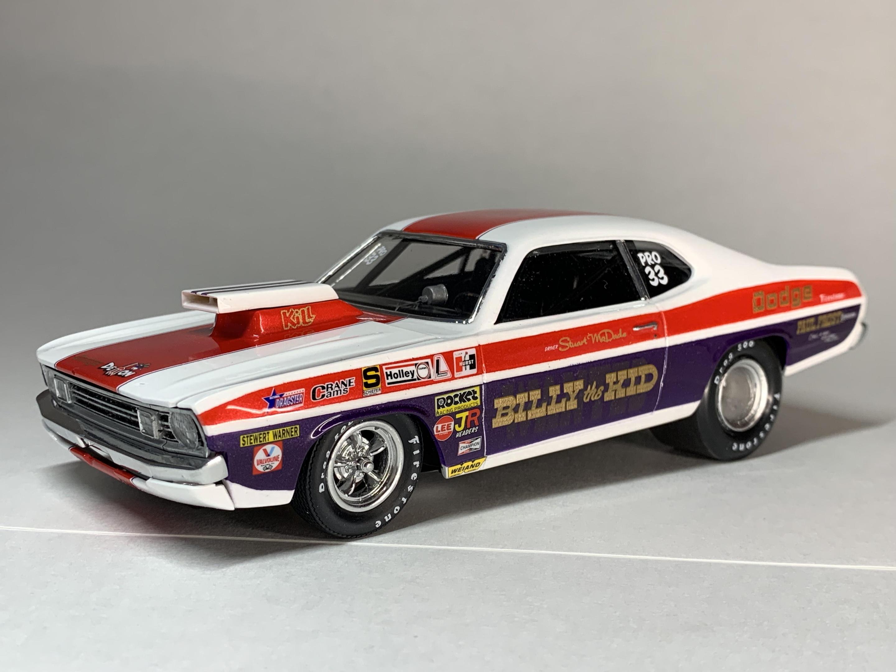 What a crazy year in the life 2024, was for me wife and I. I only finished two builds this year and worked very hard to get these two done. I hope to get more builds completed in 2025. As always comments and criticism welcome. First up is theBilly the Kid 72 Dodge Demon Pro Stock. Over a year to complete this build, Original MPC 71 Demon kit combined with an AMT 71 Duster kit, and a lot of scratch building.