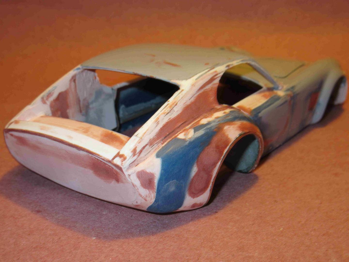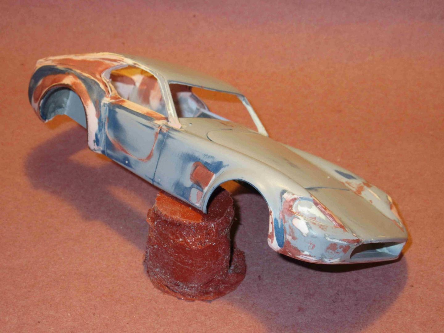 I've admired the Cobra Daytona for many years, but there has never been an affordable, decent kit to my knowledge. Since I always do customs, I decided to do a modern GT restyle of the 427 Cobra with a nod to the Daytona. In order to fit the necessary safety, performance and luxury equipment, it is about the same size as a modern Vette, which would be a natural sales competitor. The front and greenhouse use resin copies I made of other cars. Hopefully, photos of it in primer before too long.