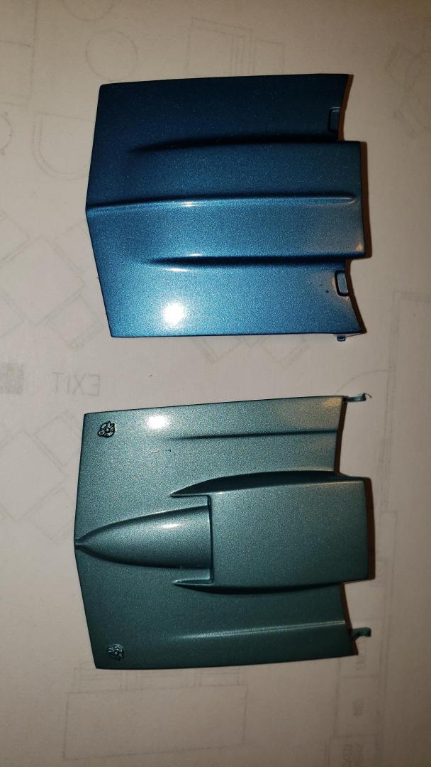 While the weather has been nice, I thought I'd get somethings painted in preparation of winter. Dug out my 1967 Nickey Camaro to get ready. Sanded, primed with Tamiya White Primer, interior primed with Tamiya Gray Primer. Body and interior airbrushed with Scale Finishes Emerald Turquoise enamel. Primed the interior gray in hopes of a shade difference in the color. Have been told it looks Blue and no turquoise to it but when I place my 67 hood with my 69 Lemans Blue hood you can really see the color differences. Hood pictures were taking inside and appear to be different color than the body but, I assure that the hood are same color as body.
