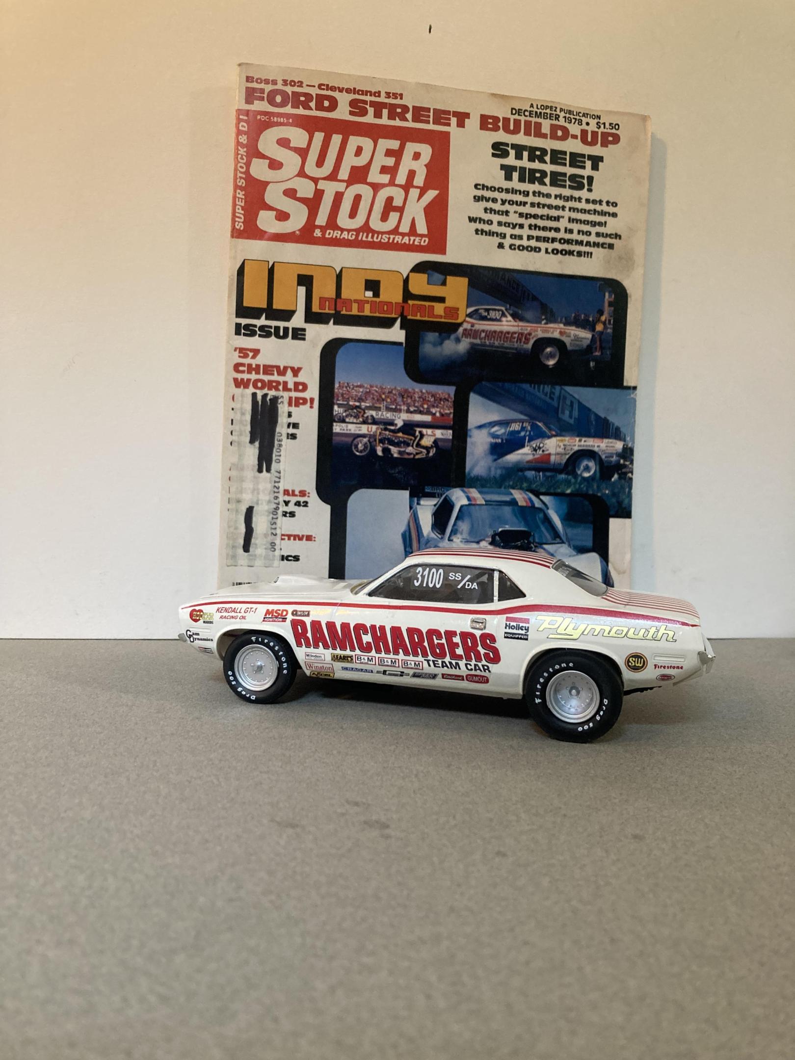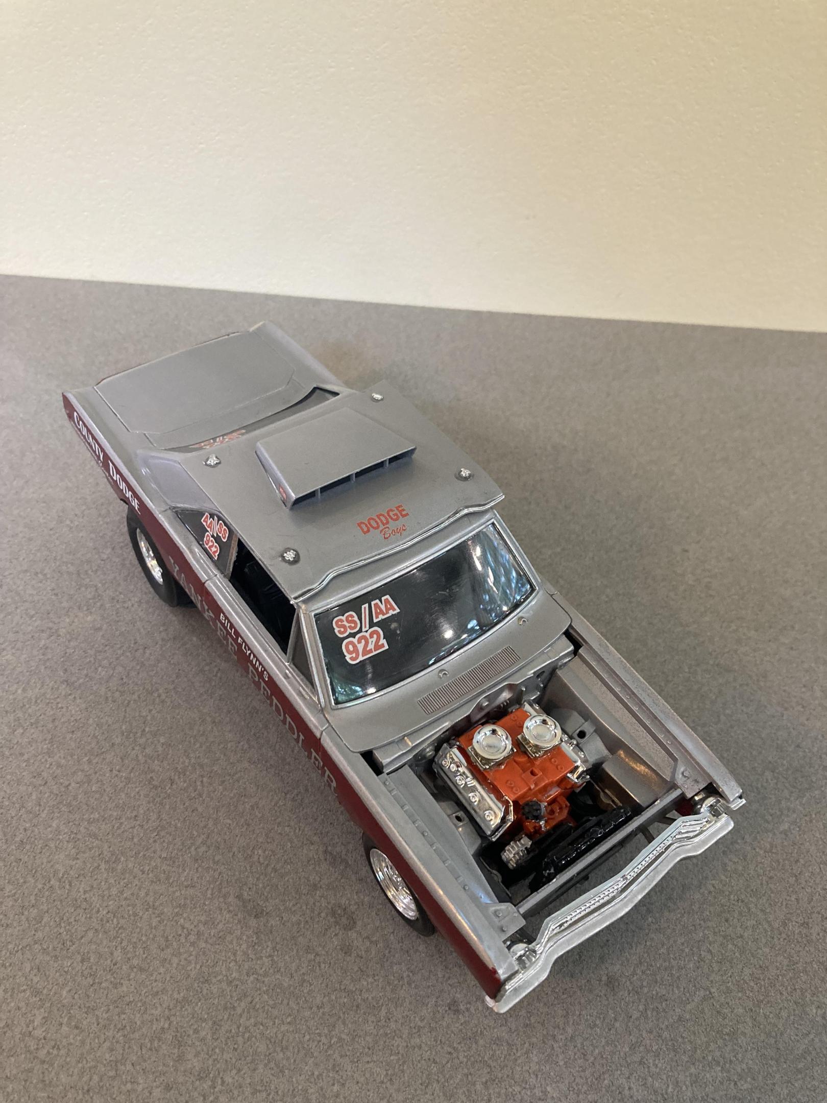 The fantastic revell hemi dart kit built out of the box with aftermarket decals by the glory years decals and graphics. Of Chris Walsh