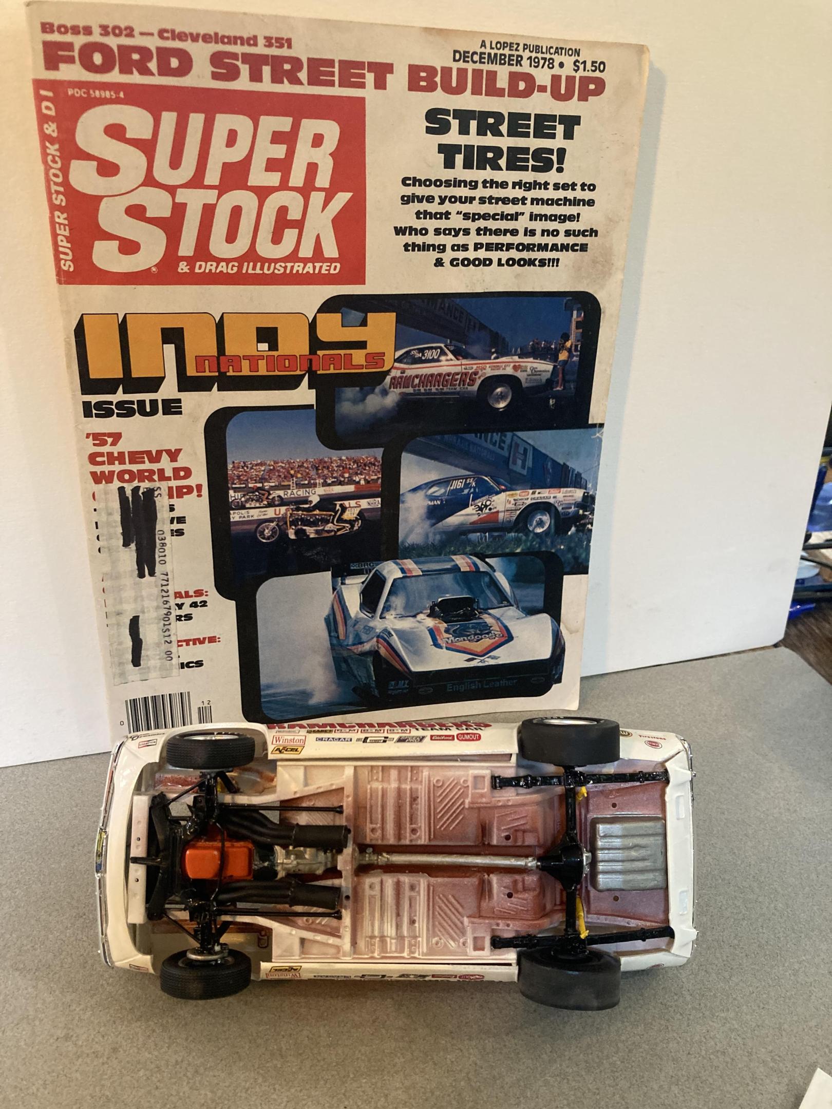 This is an out of the box build with the only upgrade being the slicks which are from the AMT parts pack . The cover shot was taken at the winter nationals which is perfect for this time of year. Those snow covered mountains make a great backdrop. As you will notice the box is in rough shape as I purchased it from a little local gift shop that was in our town in 1978 with saved up allowance as I was 8 years old . The spectacular box art with the fire burn out just sucked me right in I had to have it. At this age I was still building snap kits needless to say at the time this kit was way above my skill set . At the time my dad was way too busy with work to take on a project like this. So In the box it stayed getting moved around from here to there until I was 48 years old as the original decals had gotten a large crease in them, and were not salvageable . Thanks to eBay I was able to find a newer reissue with usable decals. So here it is. I hope you all like the little back story. These Revell funny car kits of the mid 70’s were some of the finest ever made. At least in my opinion. Until next time thanks for looking ?, Mike