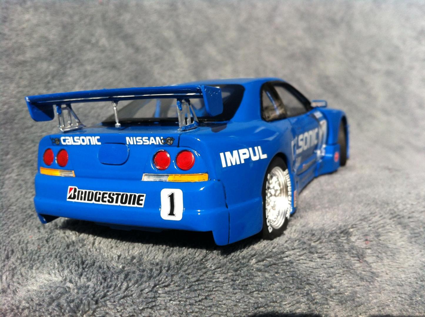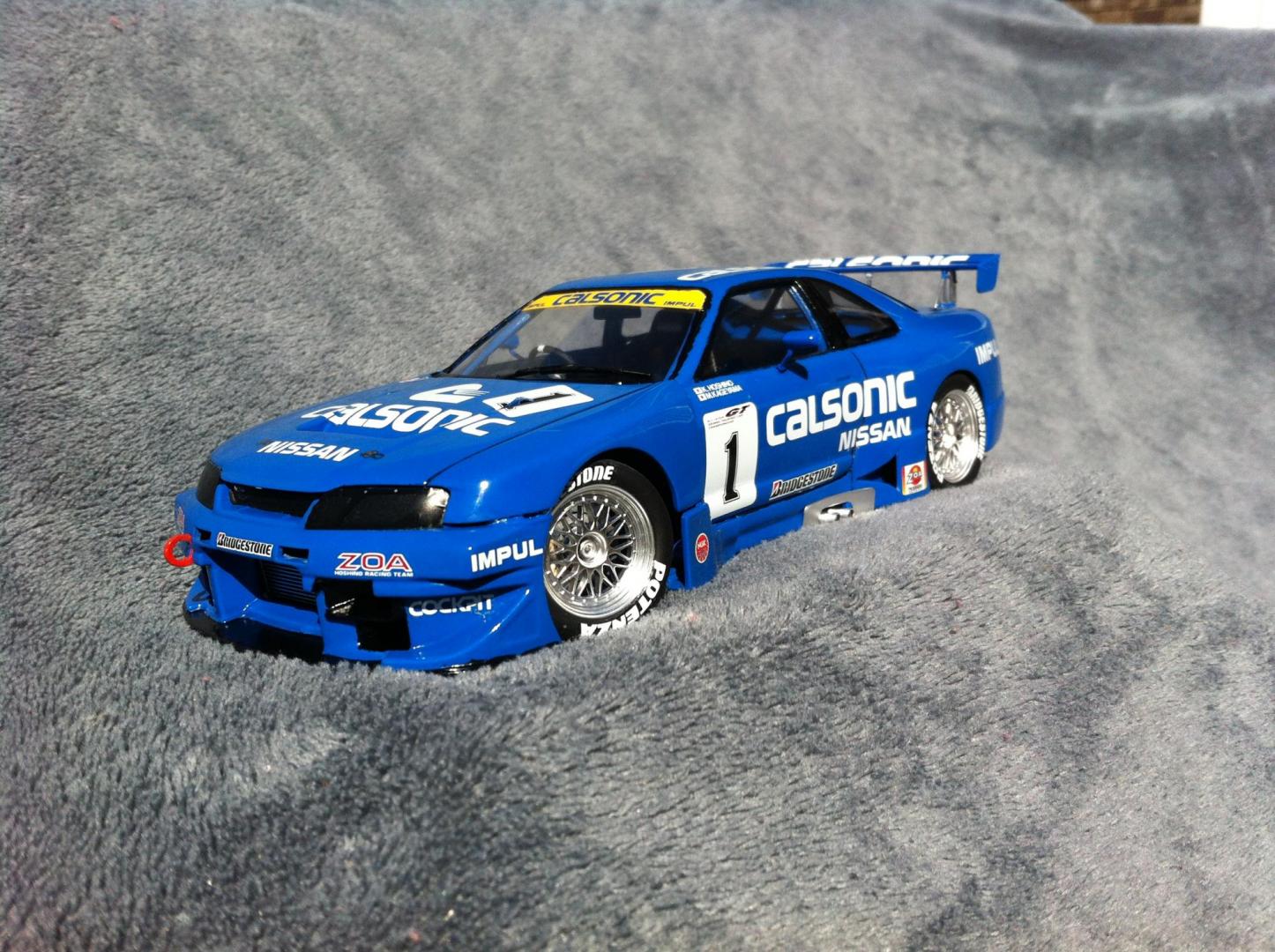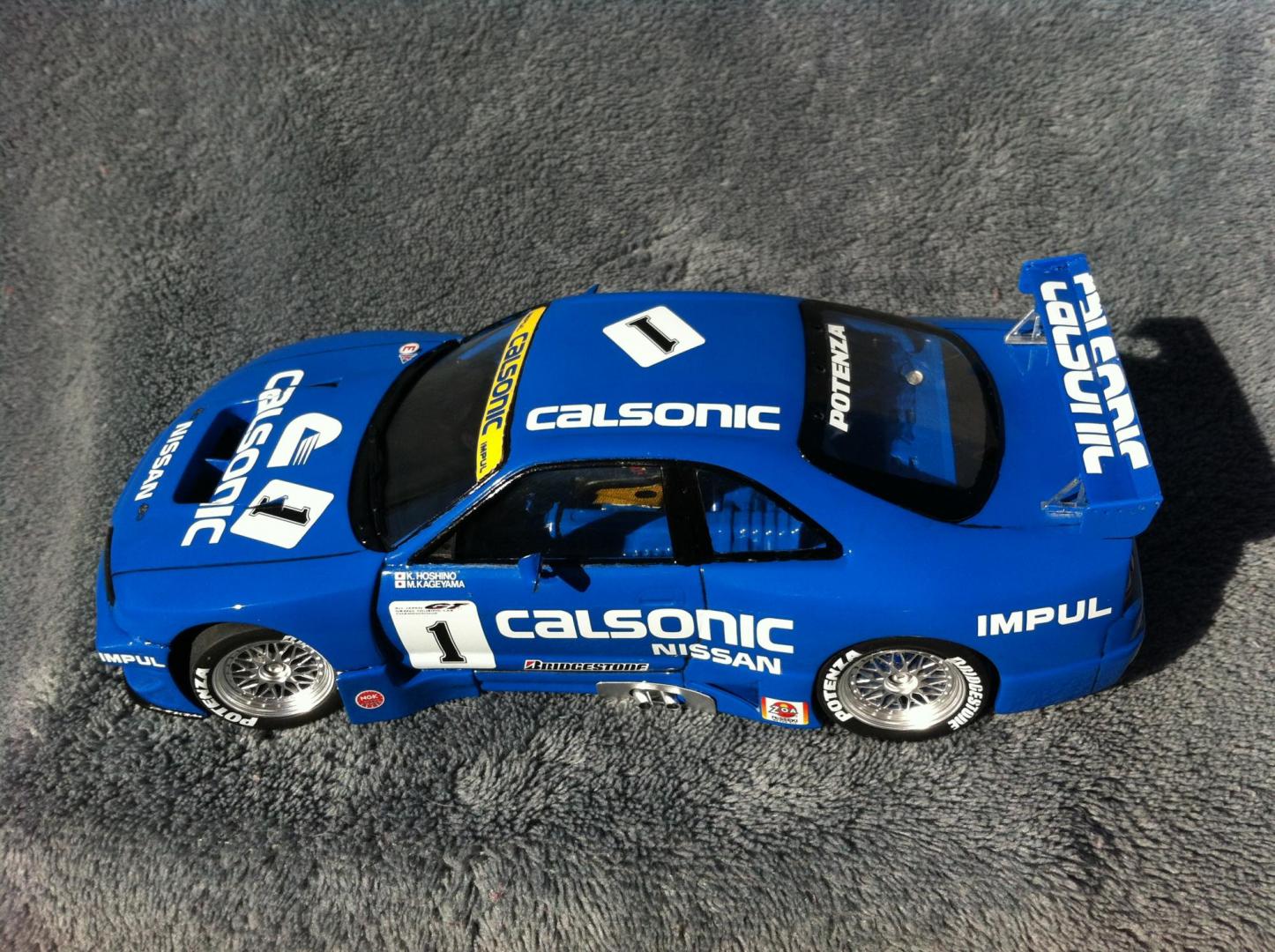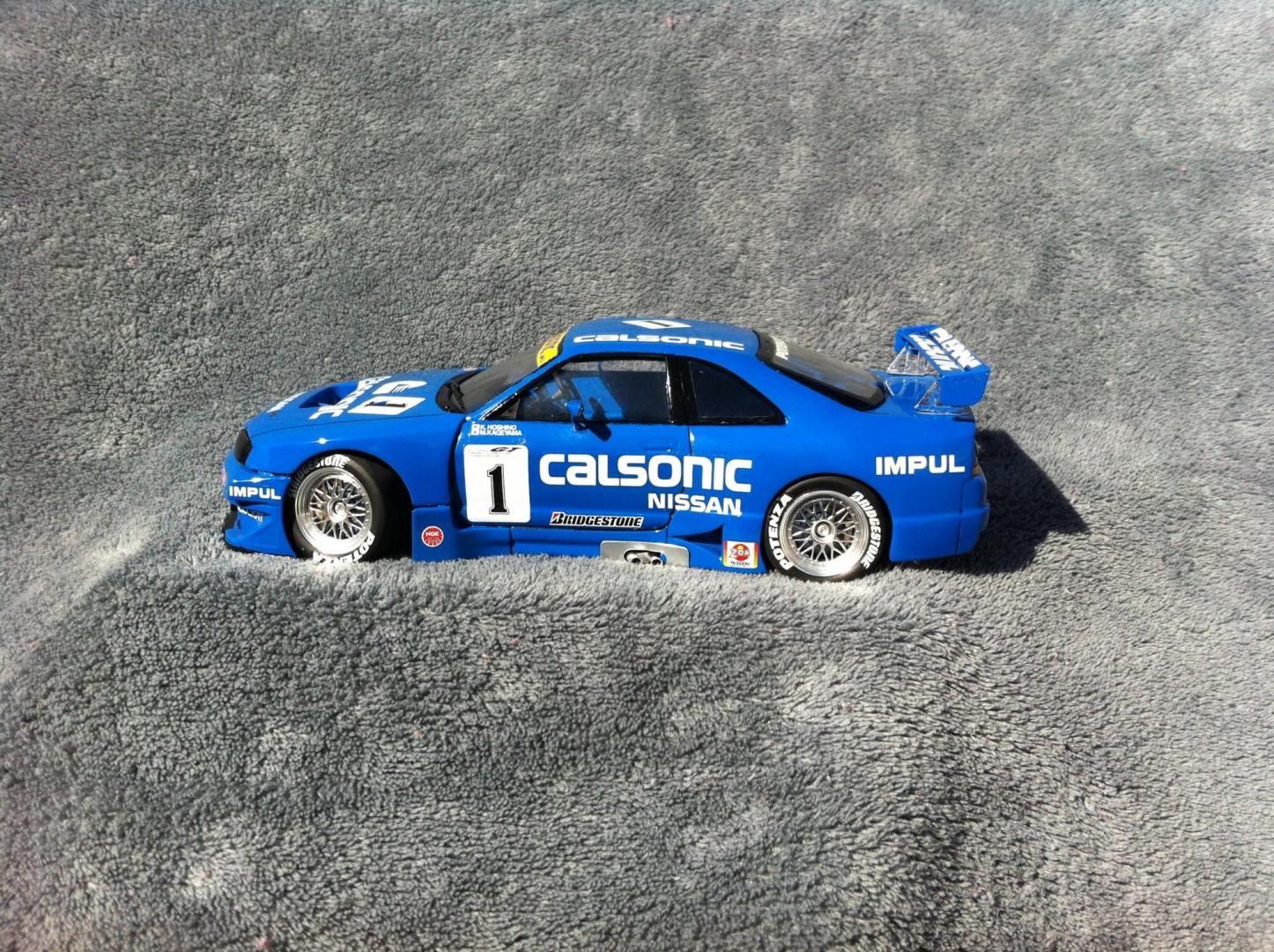 Here's my first build of 2015. Tamiya Nissan Calsonic Skyline. My first Tamiya kit. Have to say it was a pretty good one. My interest in this one came from my love of playing racing games like Gran Turismo and Forza Motorsport. Box stock. Took me 3 paint jobs to get it right. First time I tried to settle with the testors blue enamel that Hobby Lobby had. Mistake. She took a bath in degreaser. Second time I had er slick and went through while polishing. So the THIRD time I laid on 5 coats clear and it finally worked out. While I was impressed with the kit, I was NOT impressed with their spray paint. Went on slick and as it dried it fuzzed up something awful. The slick paint you see is the 5 coats of clear and a lot of elbow grease. Hope everyone likes it.