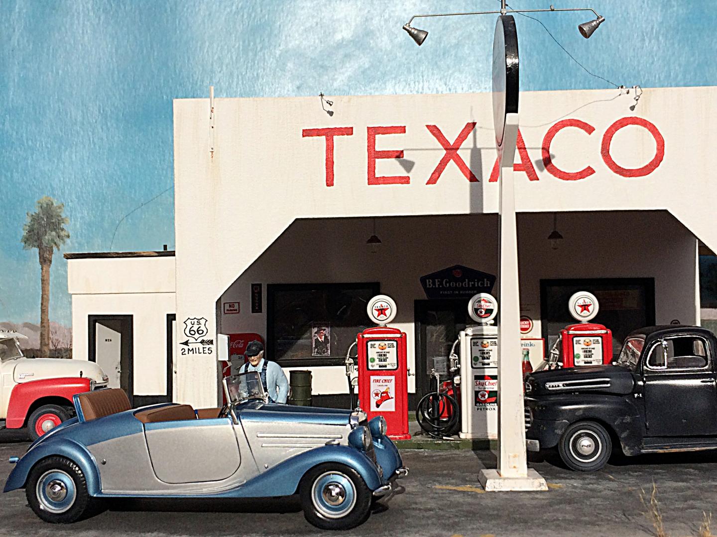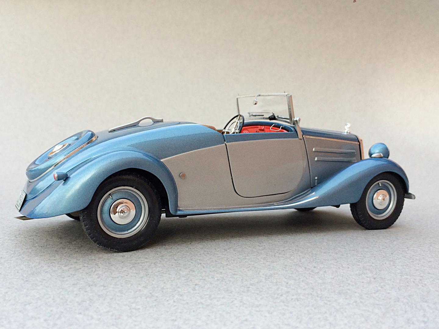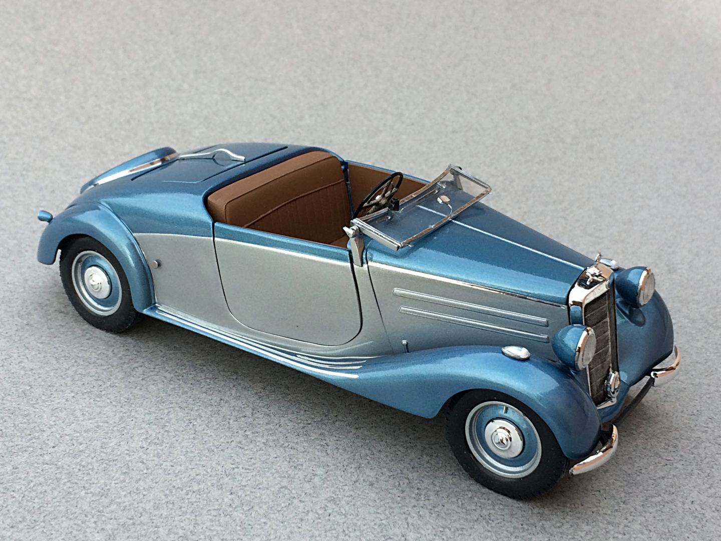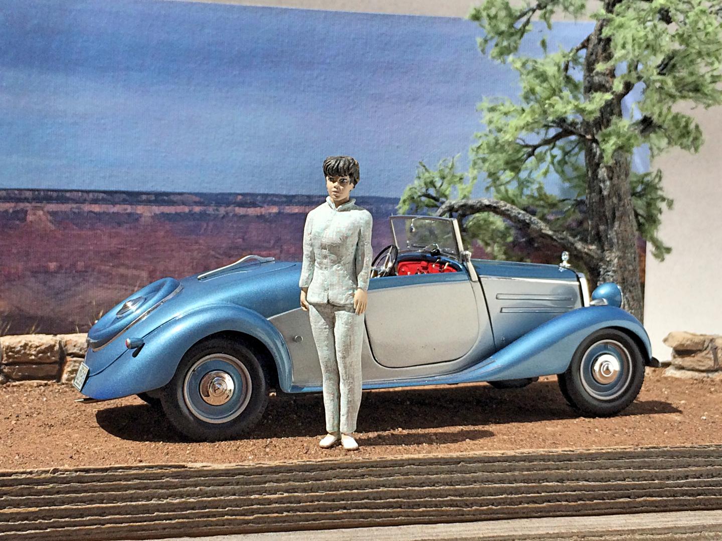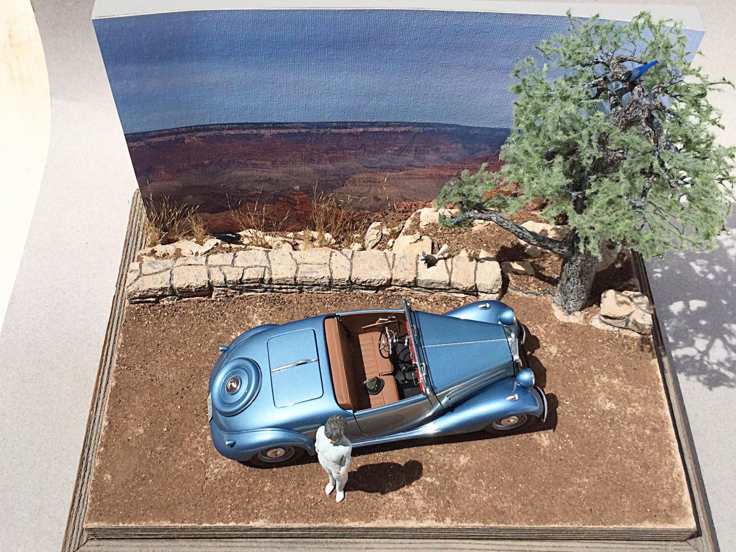 Completed a diorama display of the Mercedes 170V Roadster that I finished last December. It was fun to make the Pinon tree and rockwork. Added some wildlife, a Kaibab Squirrel, Steller's Jay and a Raven. I do wish a limb on the tree was longer, but I would never finish it. LOL