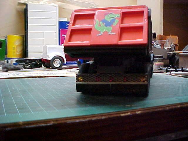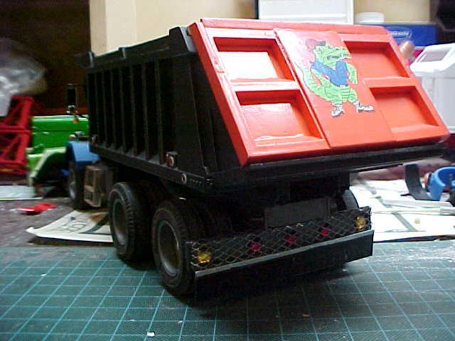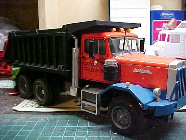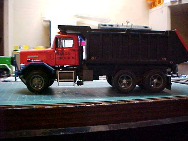 Autocar dump built mid 2012 Just prior to my move to the Philippines. Features Scow end with removable tailgate. New airhorn on left front fender . New rear light board with craft jewels for lights and a protective screen and full width mudflap. Modified to only three clearance lights. The bed has also been hardened for hauling rip rap. The model has been lightly weathered. Comments and criticisms welcome! Be Well Gator