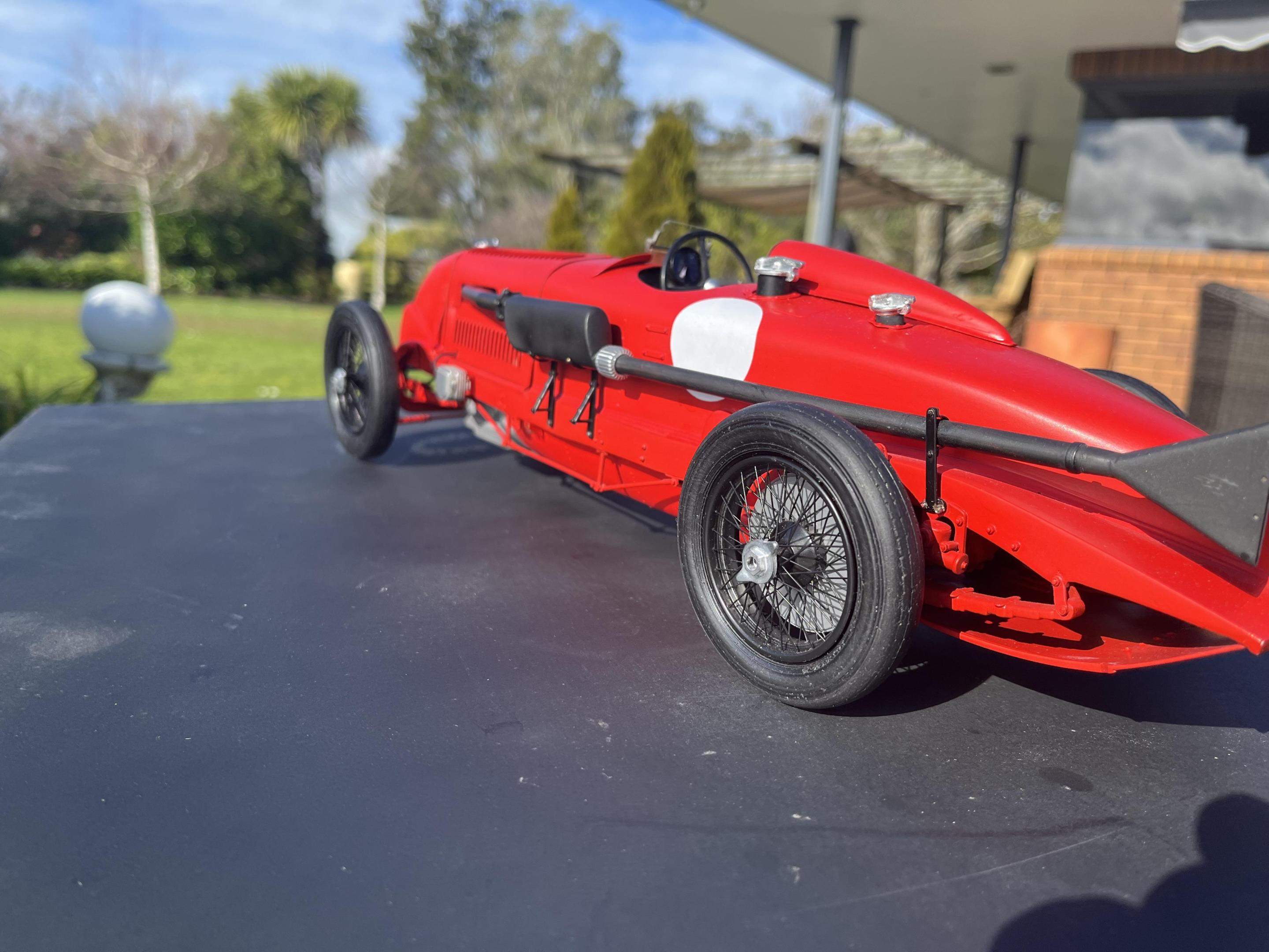 I completed this last Monday, but I was unsatisfied with the "glamour" shots I took at the time. I spent several days trying to find the posters I use for a backdrop to shoot on. I couldn't imagine what I'd done with them. This apartment is small, and I had looked everywhere those things could possibly have been! Except one. I looked there, earlier this evening, and shot a huge batch of photos. These are somewhat better than the previous session's results, so, here she is, in all her glory. I am very happy with this model! The result, here, is pretty true to the vision I had, for it, back in 1997, when I first began work on it. I got it fairly along--the chassis was built, the first body was built; I had begun work on the cockpit and driveline details, when I began to doubt my confidence in being able to complete it. I likely had the skills to do it, I just didn't believe that I had those skills, so it got shelved, until November of 2022. At that time, I knew it was time. Roughly 14 months later, I submit these photos of my proudest achievement, to date. Thanks to everyone who followed along on the construction thread: And, thanks for looking!