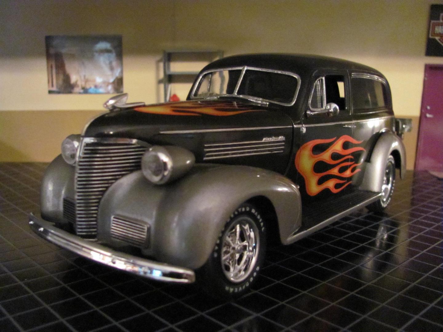 G'day all, just finished my rendition of the Revell '39 Chevy sedan delivery. This is a nice kit and goes together without too much drama. Detail is good until you come to do the interior. It has no door trim detail and the bucket seats went straight to the parts box. I used a spare bench seat painted semi gloss black with matt black inserts and red flocking for the carpet. I added scratch built armrests and window cranks. Steering wheel is from the Revell 64 Impala with column mounted tachometer. The exterior colour is Tamiya As5 light blue (Luftwaffe) with Tamiya Ts13 gloss clear, which ran out halfway through the first coat so I finished it with Mr Hobby gloss clear. Items I used from the parts box are the steelies, dog dish hubcaps, tyres and air filter (kit doesn't have an air filter). I added fuel lines and plug wires. I also added exhaust tips which were scratched out from some plastic tubeing then chromed with an SMS chrome pen. Pop's 39 is a Galveston local and is often seen parked near Pleasure Pier while Pop is out surfing. Thanks for looking, and as always, your comments are welcomed and appreciated. Cheers, David. ?? PS. Pop is a fictional character.