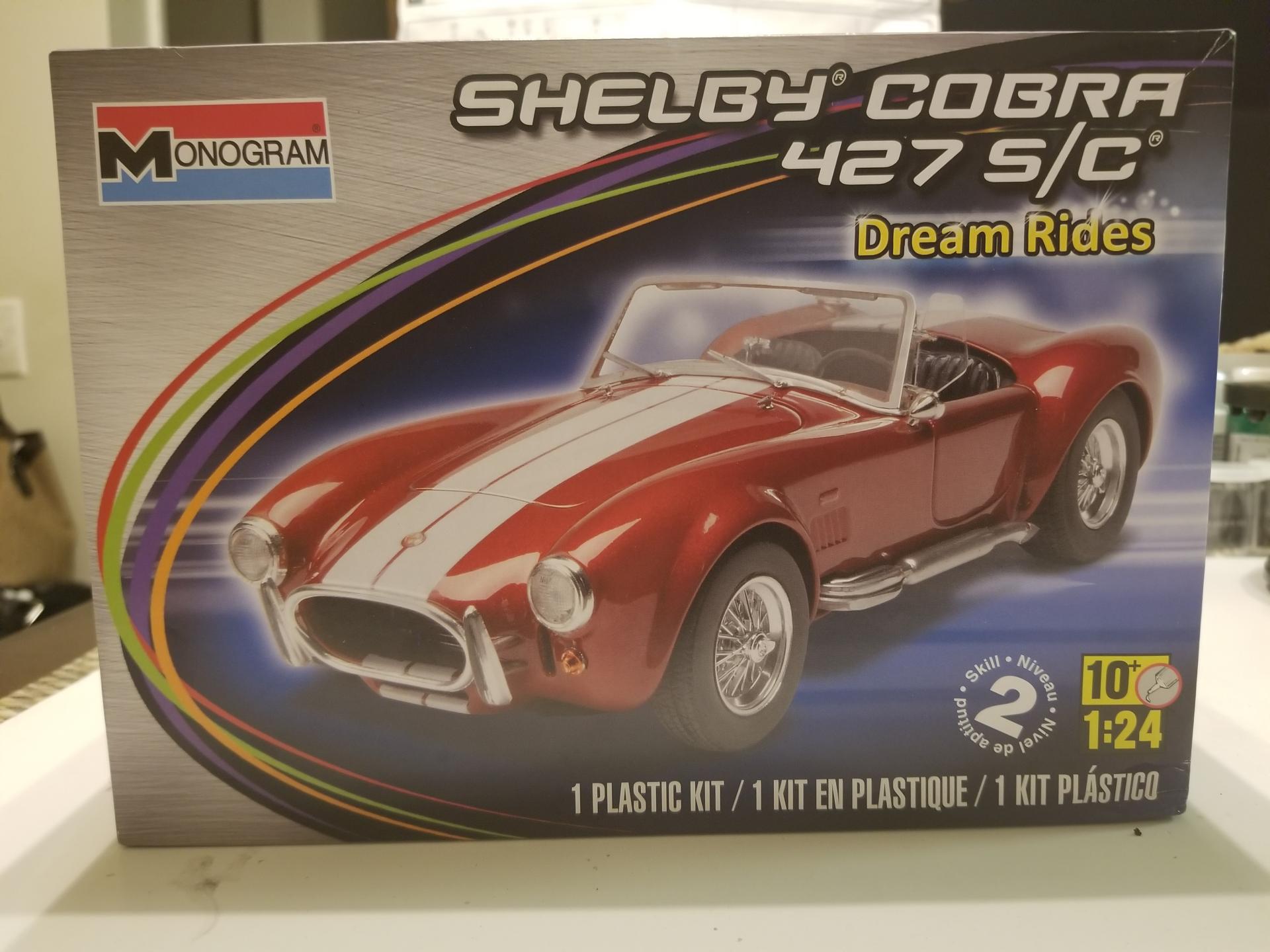 This is the current Monogram Shelby Cobra road car. I built this for my son. He got it for Christmas, and he's never even touched a kit before. This is a fine enough kit, but it's not something you throw at a first timer to make them cry in frustration (tiny parts, windows & stripes, *cough*). I showed him how to read the instructions, test fit and remove parts from the sprue without ruining them. He also got some military armor kits, he's gonna work on those, as it would be easier to fix mistakes without making them look like a horrible mess. Its not perfect, more orange peel than I would've liked, but its good.