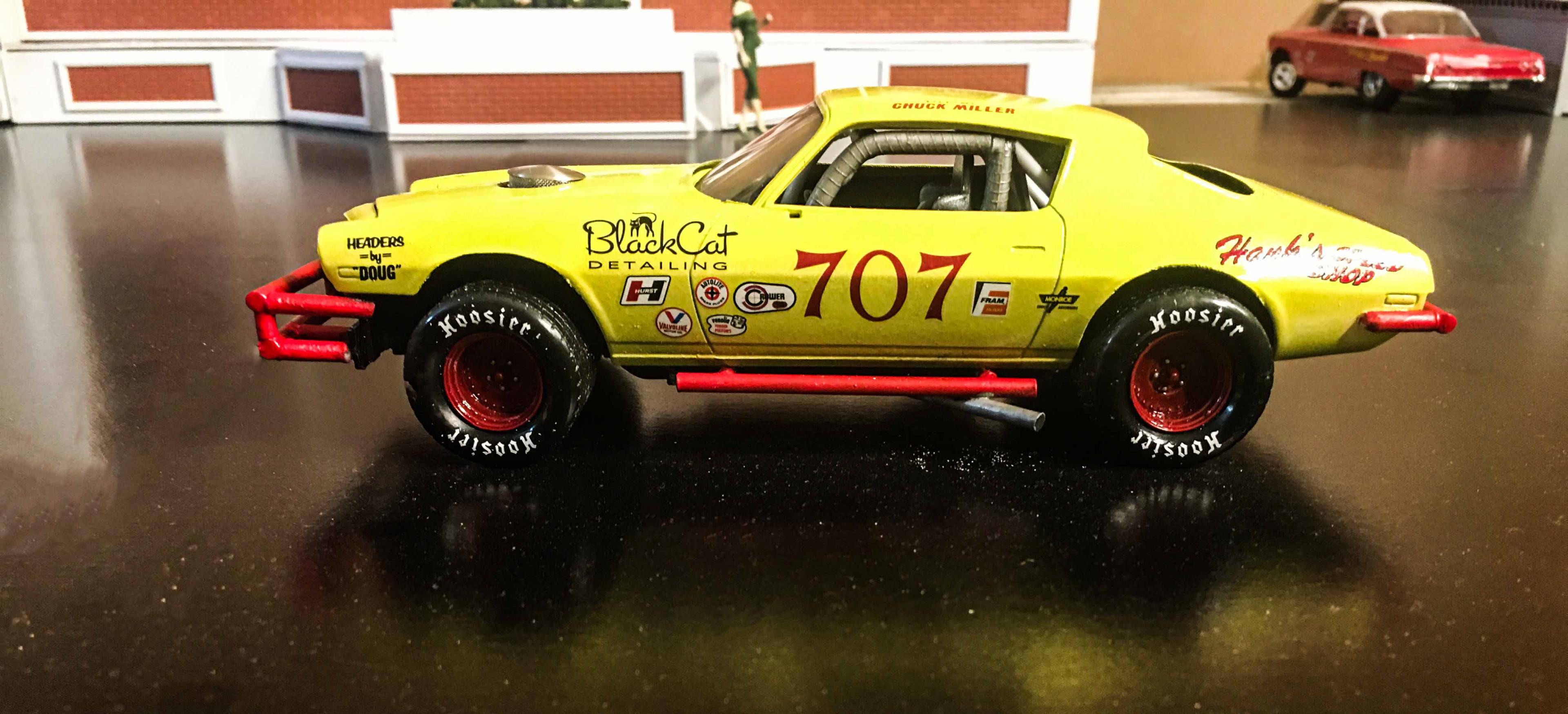 These girls are ready for a wild night of playing in the dirt. I built this one many years ago when this version of the 66 Nova kit first came out, and was one of my first attempts at building a dirt track stock car.