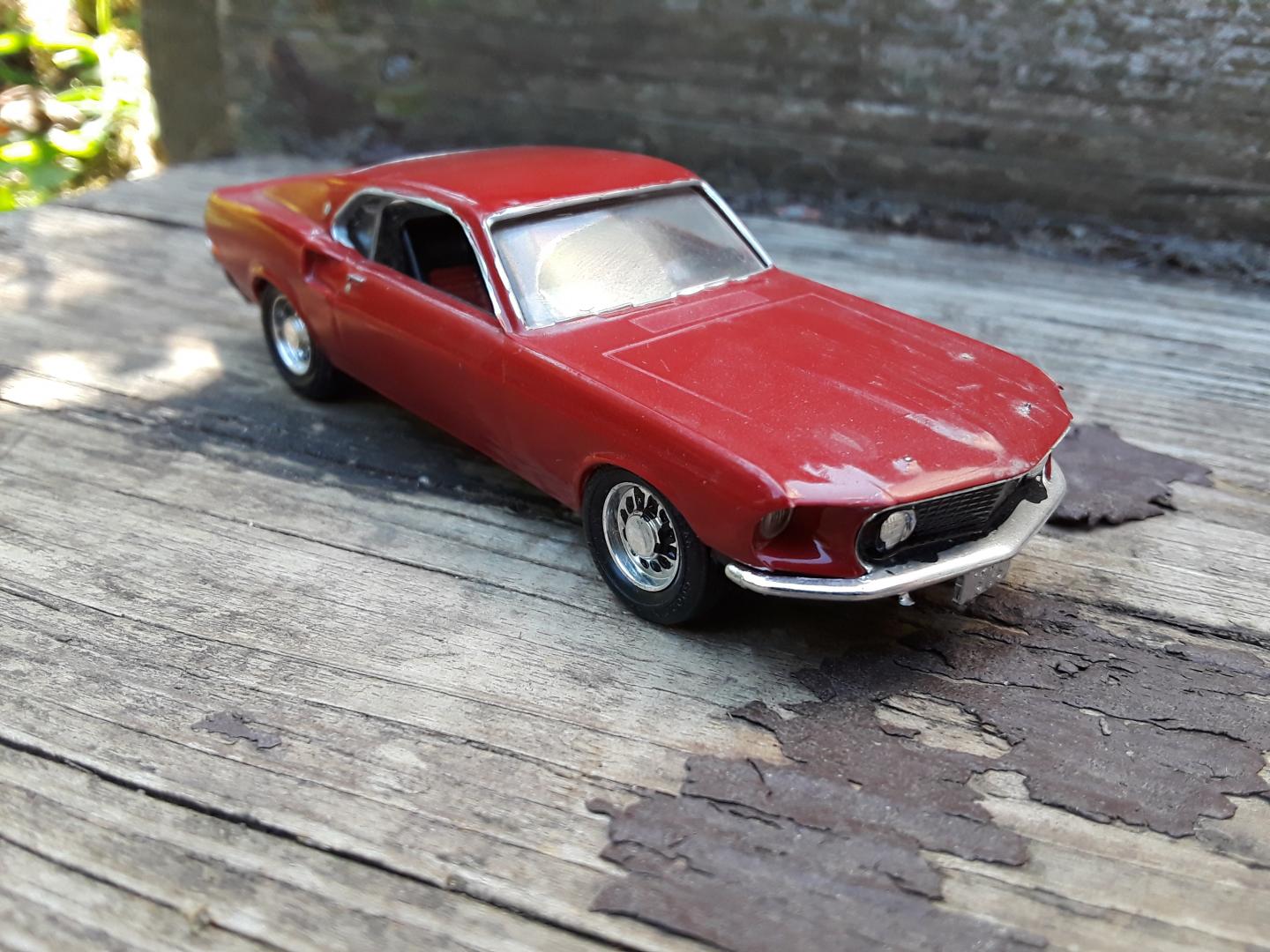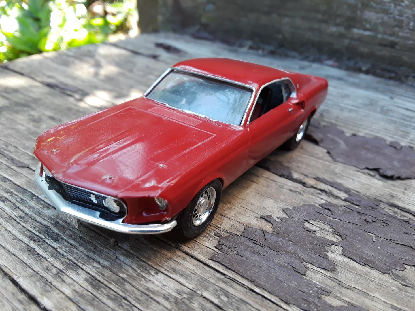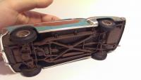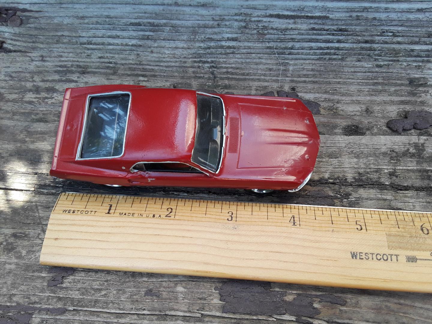 I found this in a box of old model cars that my Dad built in the early '90s. This is the 1989 release 1:43 scale AMT kit. It sure is a survivor - it's seen everything from bitter cold Winters sitting on a shelf in a garage, to sweltering hot Summers packed away in a box in an attic. The last pic includes a ruler to show how small it is.