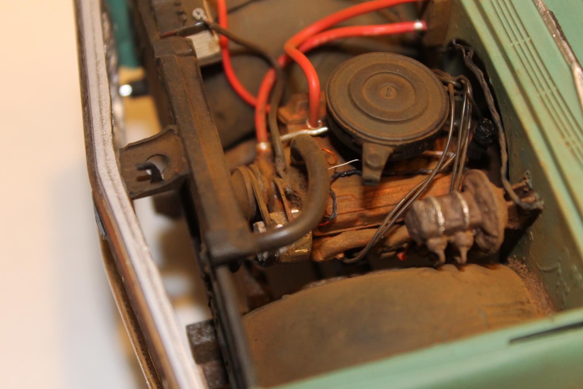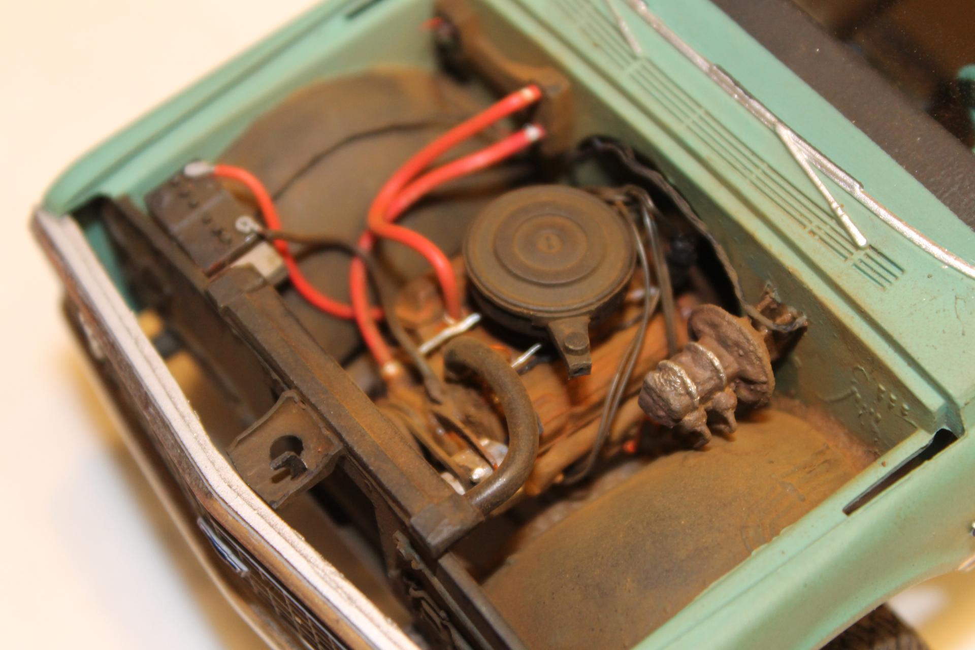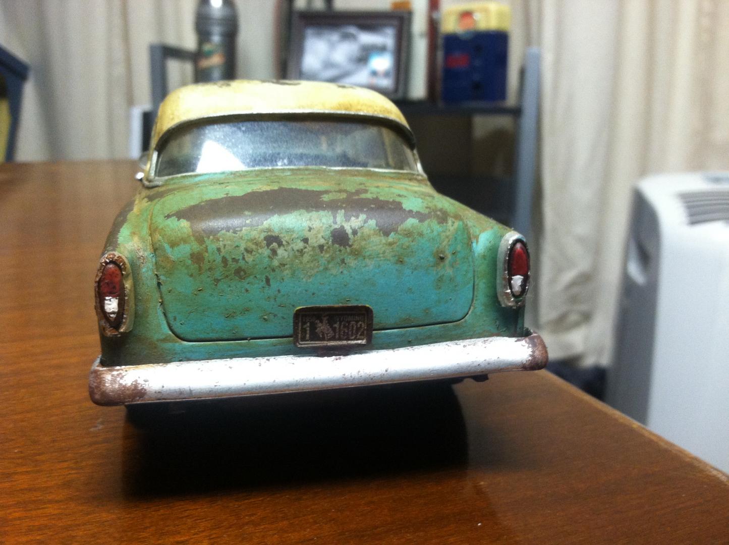 I finished this Galaxie about two and a half years ago. This was my first attempt at post apocalypse vehicle. My first attempt at weathering too. I watched all the videos and all the techniques I could find on Youtube. What would we do without internet??? I think that I repainted the car body four times. Never happy with the weathering job. In the end I was very happy with it. http:// http:// trunk cover closed: http:// trunk cover open: http:// The fuel storage. I made the 55 gallon drum out of a container that held diabetic blood strips. http:// http:// http://
