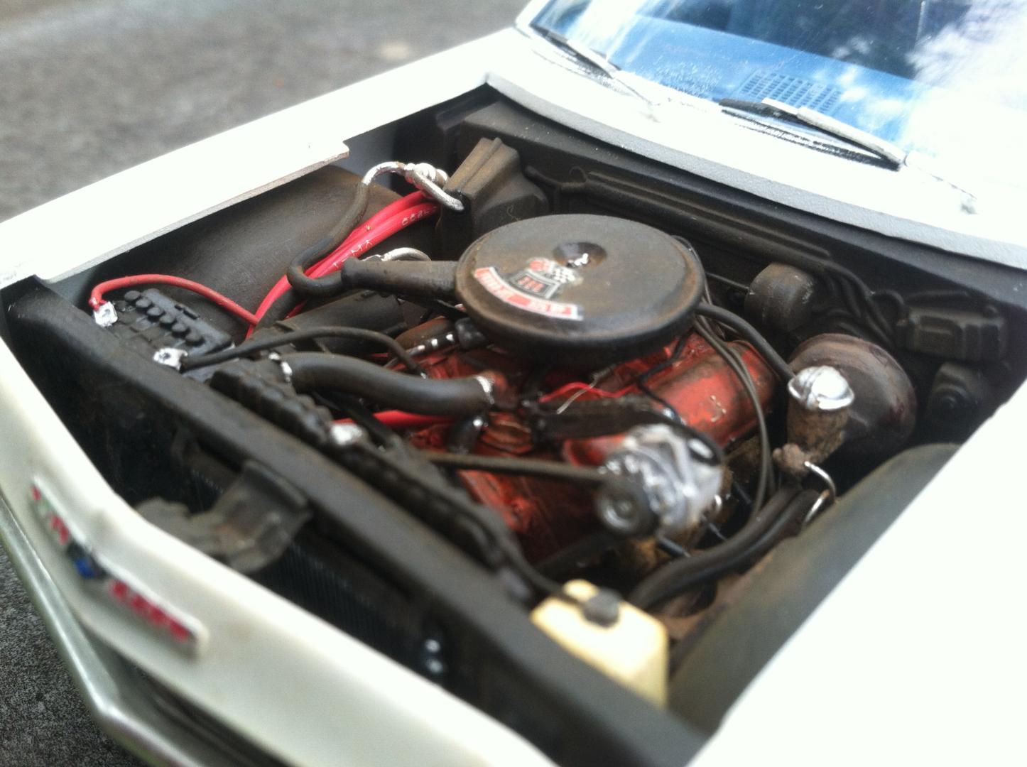 I'll post pictures of the body soon when I get the color scheme finished, but for now I need help with wiring the engine (It'll be my first time, but I've a good plan already). So far, my plan was to use picture hanging wire (was my only quick + cheap option), "drill" the spark plug holes on the valve covers, and glue the wires through the holes. BUT: Now I can't figure out how to glue them on the Distributor Cap!