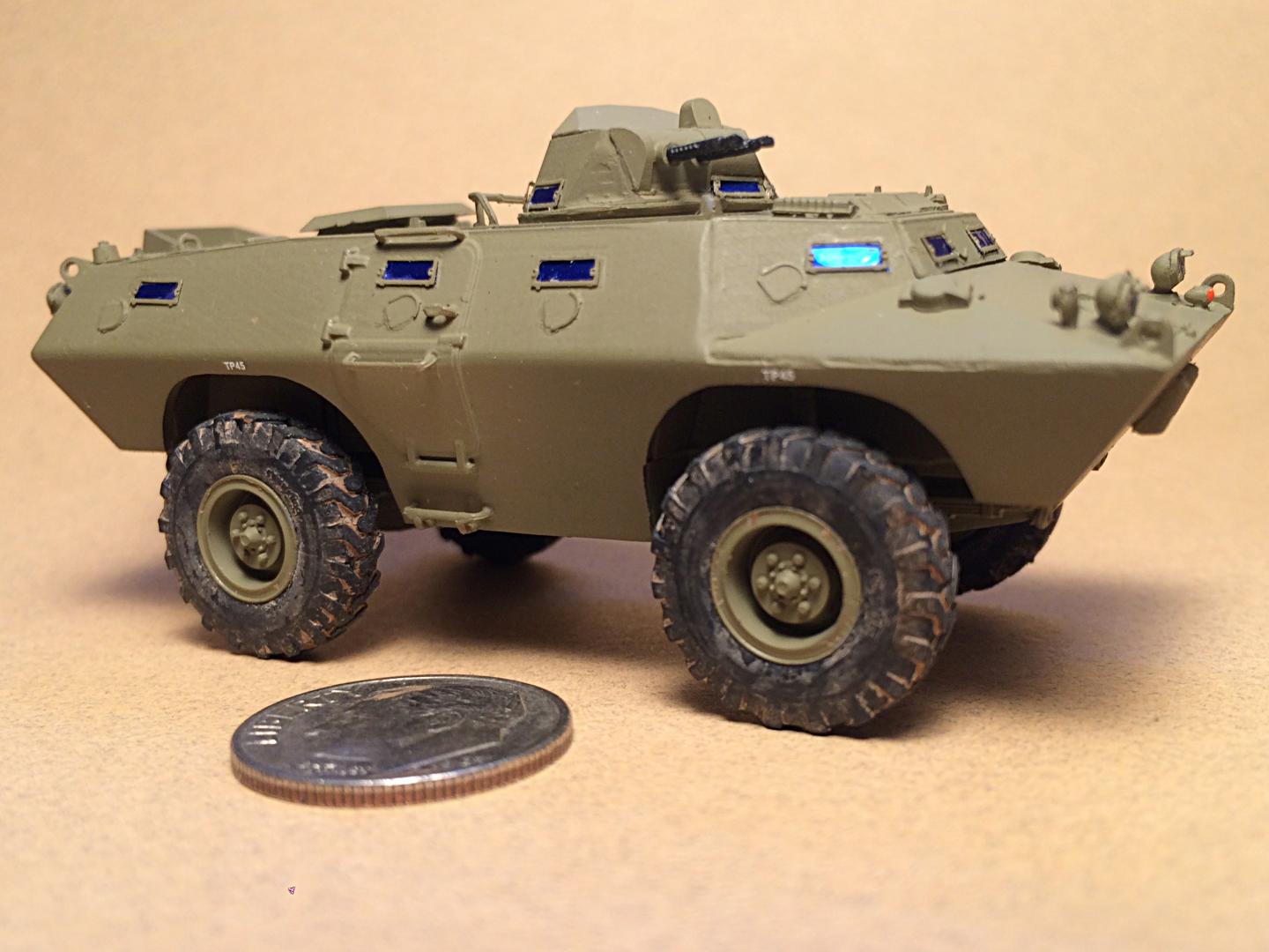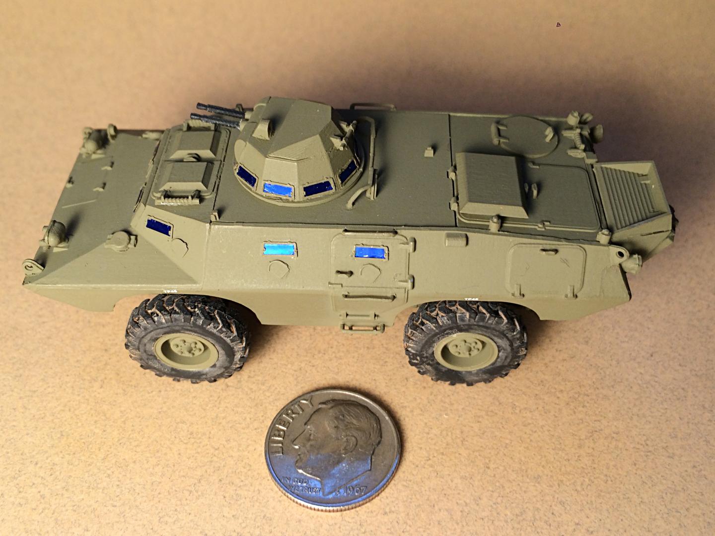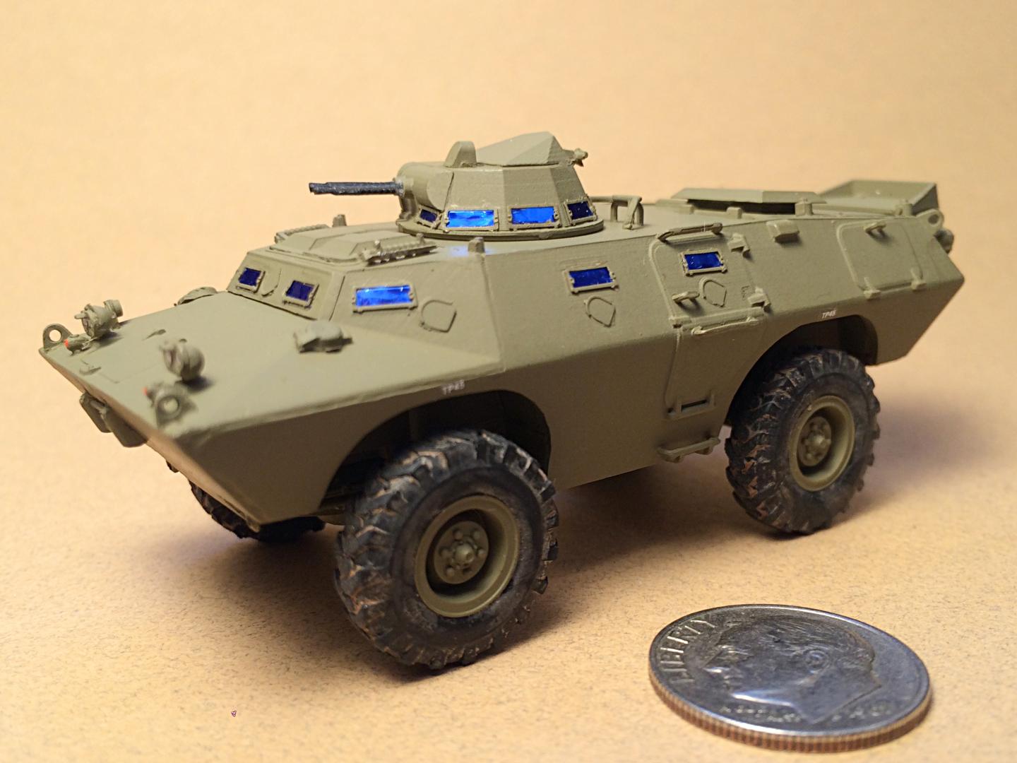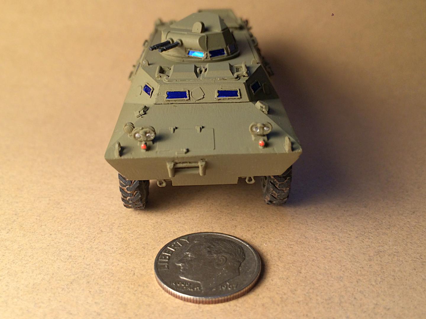It's a Russian made ACE 1/72 scale kit. He did not want to build it, and I can (barely) see why. It is extremely detailed, with teeny tiny parts. But it didn't take too long. It looks incomplete with no stars, and not weathered, he said they had to keep them clean, and no machine guns since they were stationed in the city.