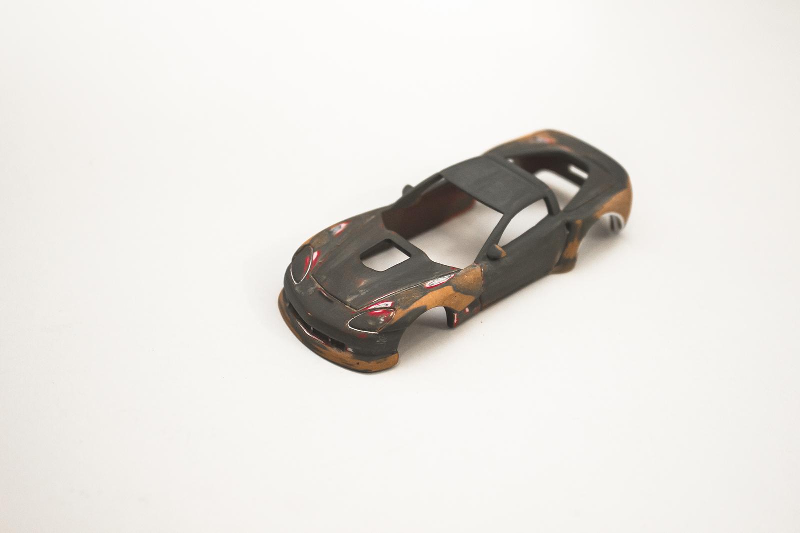 Decided to merge a bit of my favorite JDM tuning influences with a rock-star of a US sportscar. The original HOtwheels version was nice enough but had some glaring issues such as the big/little wheels sizes. Putting a smaller wheel on the rear meant there was a wider wheel gap and a slumped down rear end. This is the first time I work with modelling putty. Work done: Lowered. Wheel well filled in. Widebody conversion. Custom front splitter. Rocketbunny style rear spoiler. Side mirrors. Wheels cut and reassembled further out to sit flush with wider track. IMG_3597.xmp