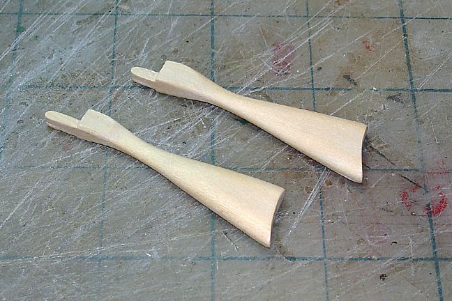 Harry P. Posted October 2, 2015 Author Posted October 2, 2015 Time to build me a couple o' shootin' irons! The stocks were cut from basswood with a sharp X-acto blade, and the rough shaping was done with said knife... raw piece on the top, lower piece with the beginnings of the shape carved... Once I had both stocks roughed in, I used a sanding drum chucked up in my Dremel to quickly get closer to the final contours, using the photos Skip supplied as my reference. Finally I went to hand sanding to get the contours right. No real secret to doing this, it's just a matter of patience. Always easier to remove wood than to replace wood. After about an hour of very pleasurable work (I love woodworking), I was pretty much ready for stain... More coming tomorrow...