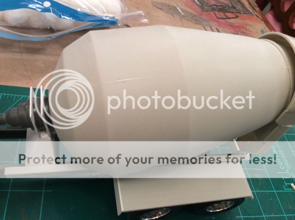 Superpeterbilt Posted October 1, 2015 Author Posted October 1, 2015 Moving along on the Pete mixer, I ground down all of the weld reinforcements along the drum. I'm going for a modern smooth drum with light weld detail. I also ground off the ribs on the fenders, and spent a few hours sanding each smooth. I also made a new uncle spinney dervish on the lathe out of gray PVC rod. I just need to add bolt detail, a tank, and lines.