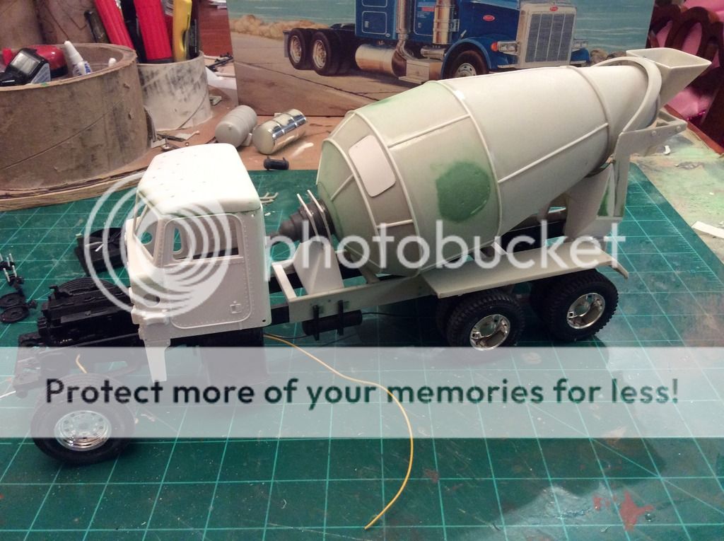 Superpeterbilt Posted September 29, 2015 Author Posted September 29, 2015 For me, now this is just suggestion. The 378 mixers out here are a bit longer wheelbase. The water tank sits behind the cab, then there's a bit more room. But, all the mixers out here also run the big steerable booster lift axle. Your doin a fine job none the less Terry. Glad to see your gettin a few things done. Thanks for the suggestion. I'm going for the tight wheelbase with the water tank mounted on the driver side frame. The kit water tank mounts are going to be replaced. I like the configuration of the 357 mixers, but don't really want to get into modifying the hood. The standard 378 mixer chassis looks too long to me. I don't like the empty space between the cab and the drum. I'm hoping to get this one knocked out fairly quickly without to much scratchbuilding, while I'm working on the Autocar and the Pete 359. It was good to get a few trucks finished, and I want to knock out one more before I'm back on the long term projects.