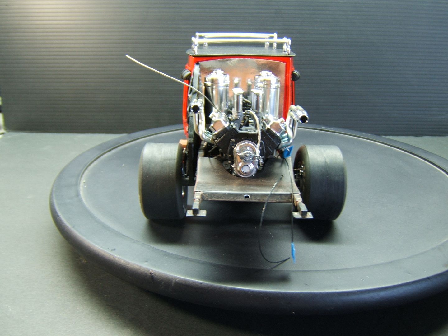 John Teresi Posted September 24, 2015 Author Posted September 24, 2015 Hello......thank you all very much for the kind comments.......I really do appreciate them.......I attached the front and rear wheels and also attached the engine.......I still need to add the shut off cable and the plumbing to the fuel tanks......I modified the window curtains to fit my body mods.....thanks for looking
