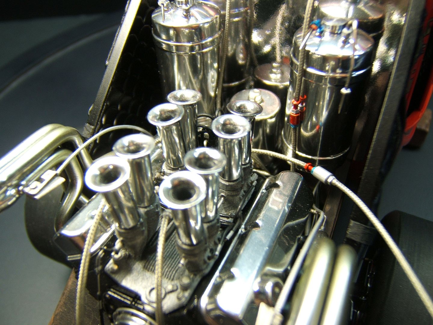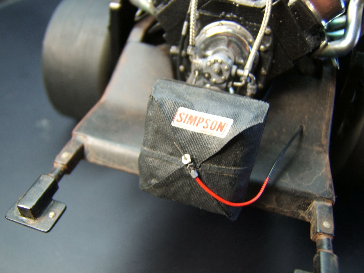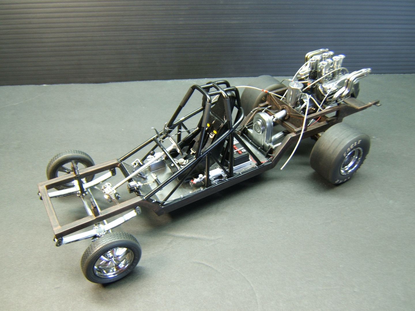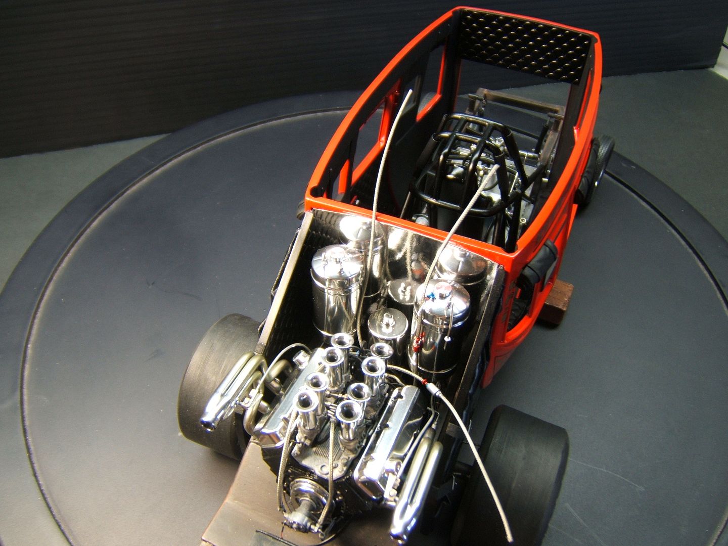 John Teresi Posted September 25, 2015 Author Posted September 25, 2015 Hello......Chris,Clayton.Anton........thank you very much for the kind coments.....I really do apprciate them..........the body is finished......I attached the parachute,shut off valve cable, throtte cable .......I made some fuel filters and attached the braided line from "Pro Tech"......I also made some ignightors for the headers that make the flames shoot out the headers.......I just need to add the front of the Coach and the front seat bench......thanks for looking.