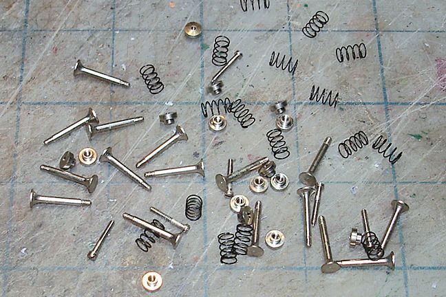 Harry P. Posted August 19, 2015 Author Posted August 19, 2015 The engine valves really work! Here they are (along with a few stray bolts that somehow snuck into this photo). The valves are machined and nickel-plated brass, and the valve springs are...well... springs.
