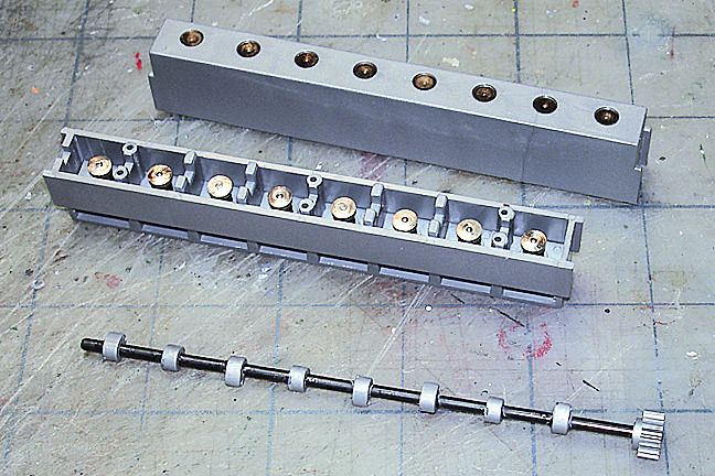 Harry P. Posted August 19, 2015 Author Posted August 19, 2015 The engine is a dual overhead cam design, so you have to build two camshafts. The cam lobes are a friction fit on the shaft (a pretty tight fit, as they have to keep their position on the shaft when the shaft turns). Since this engine doesn't really run, the relative position of the lobes to each other doesn't matter. I just made sure no two adjoining lobes were in the exact same position. Again, none of this wiill be visible anyway once the engine is built. You can also see the installed valves in the heads in this photo...