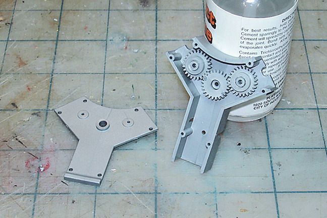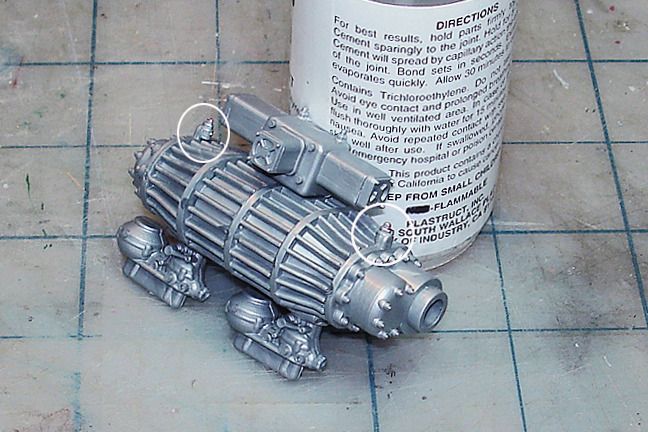Harry P. Posted August 20, 2015 Author Posted August 20, 2015 Got the supercharger/dual carbs assembly built, and I will detail paint it s a unit, but first I have to take care of a small problem... the fittings for the linkage/oil lines are molded in the wrong place... So I whipped out my trusty razor saw, removed the fittings, and glued them in the correct positions...
