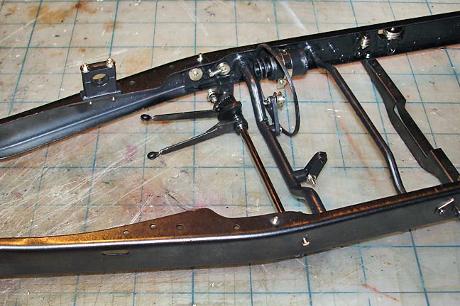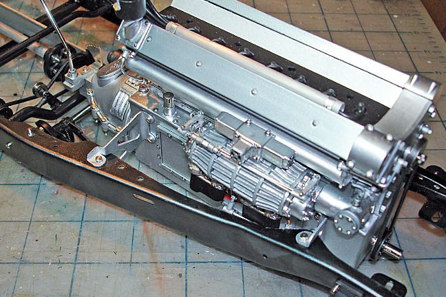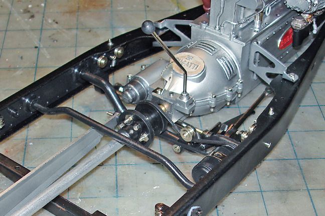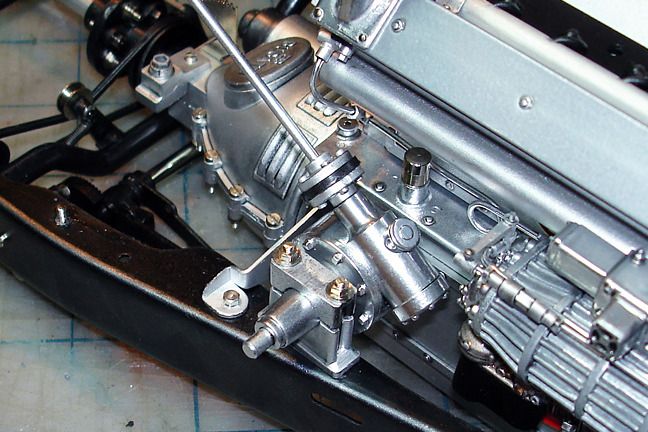 Harry P. Posted August 30, 2015 Author Posted August 30, 2015 The left side of the engine, bolted to the frame. You can see the modified exhaust manifolds with added mounting flanges and "bolts" that are cut from hex-shaped styrene rod, and some of the scratchbuilt external oil lines and fittings. That round gizmo at the left front of the engine is the water pump... the round hole in the center is where the hose to the radiator will go... And the right side, with scratchbuilt linkages...