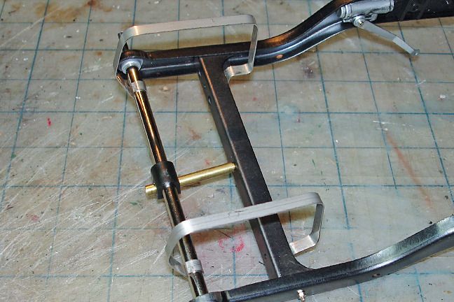 Harry P. Posted August 30, 2015 Author Posted August 30, 2015 Speaking of the gas tank... the metal straps that hold the tank in place come flat, the builder has to bend them to shape. Would have been nice if Pocher had supplied a template or diagram, but nooooooo. You're on your own! Kinda tricky to get the correct bends in the exact right places to wrap neatly and tightly around the tank without gaps, but eventually I got it. Here we are looking at the chassis upside-down with the straps ready for the tank...