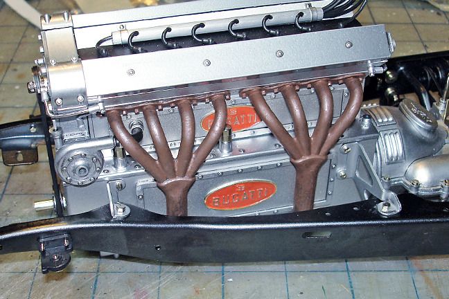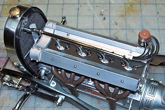 Harry P. Posted August 23, 2015 Author Posted August 23, 2015 I've been working on adding missing oil lines, missing fuel lines, missing linkages, etc. It's slow and tedious, scratchbuilding all those tiny details, but the right side of the engine is getting there. See what I mean about those cool BUGATTI name plaques disappearing once the engine gets closer to finished?