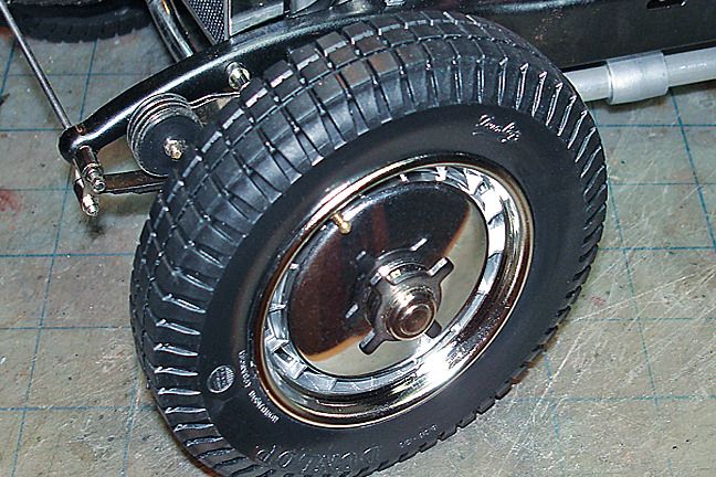 Harry P. Posted September 14, 2015 Author Posted September 14, 2015 And the finished wheel... Pocher tires are super stiff and almost impossible to slip over the wheel. I have found a simple solution... I put the tire into a small bowl of water and microwave the water for a minute or so. That softens up the tire and makes it very flaxible and easy to slip over the wheel.