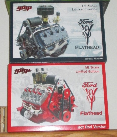 AzTom Posted August 31, 2015 Author Posted August 31, 2015 (edited) 1/6 scale engines. 327 Corvette kit by Revell Factory assembled 327 Corvette by Liberty 283 Corvette plastic kit by AMT Ertl 427 Ford Here we have two Ford Flatheads by GMP. These are 1/6 scale made of diecast and very detailed. Edited September 3, 2015 by AzTom